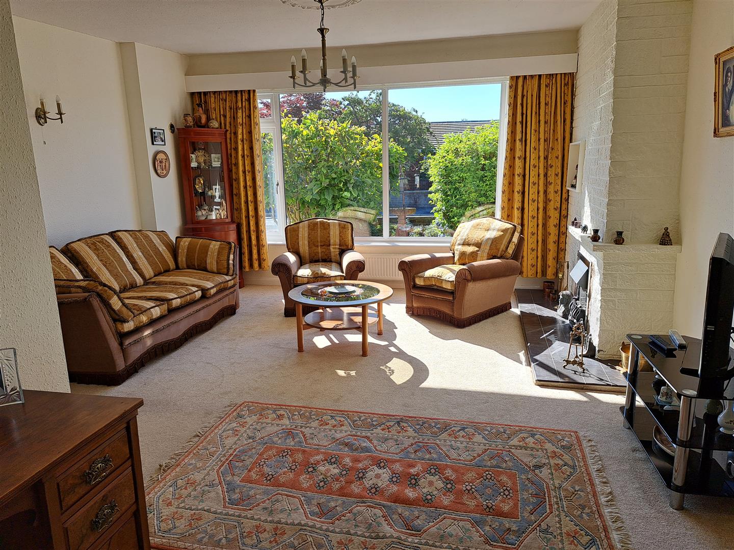 - Porch, entrance hall, L-shaped lounge/dining room