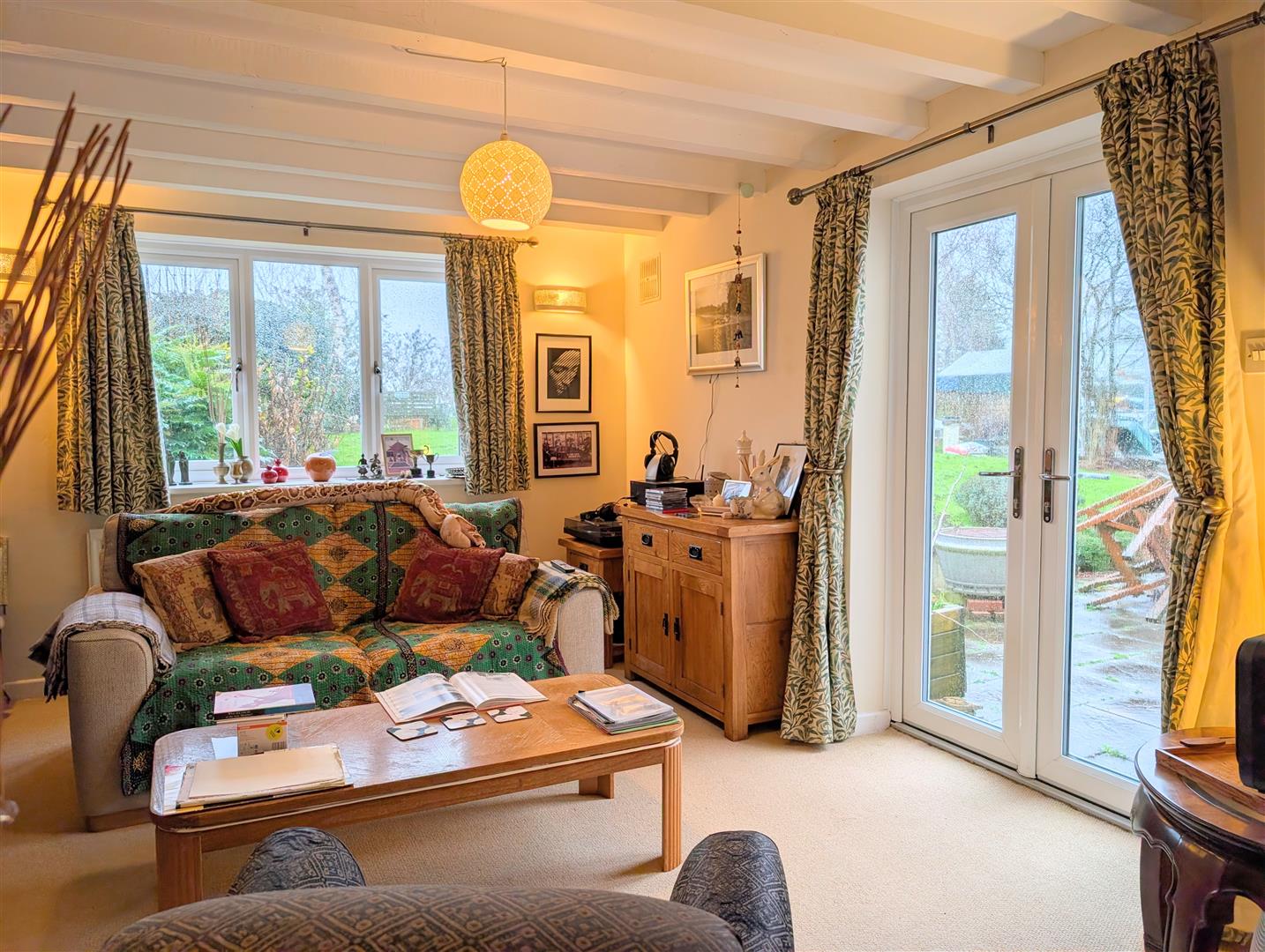 - Living room with French doors to garden