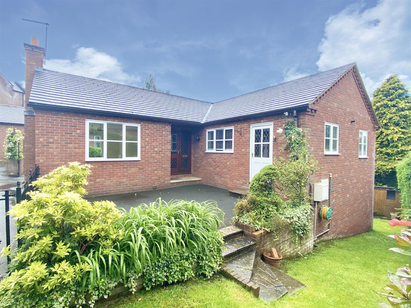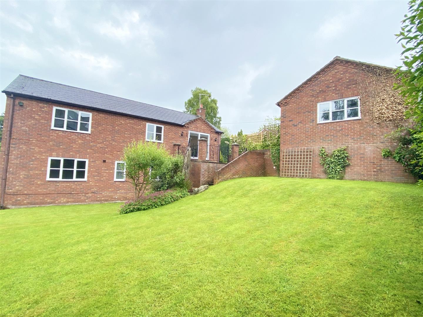 - Detached double garage and expansive driveway