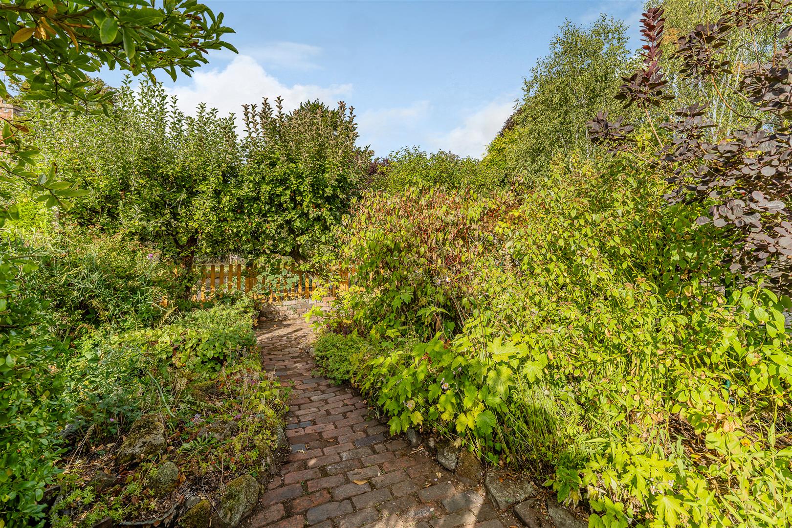 To the rear there is a delightful, informal COTTAGE GARDEN filled with a mix of flowers and herbs, grown closely together. The garden features winding pathways, perennials and a natural slightly untamed look emphasising an abundance of colour over strict order.