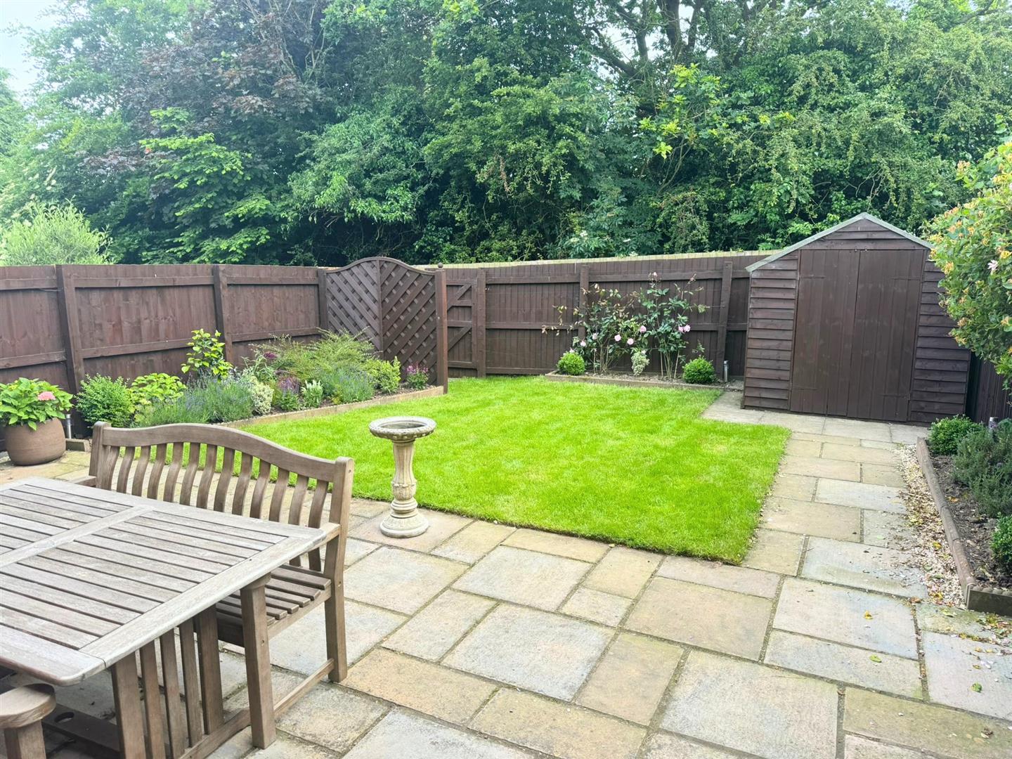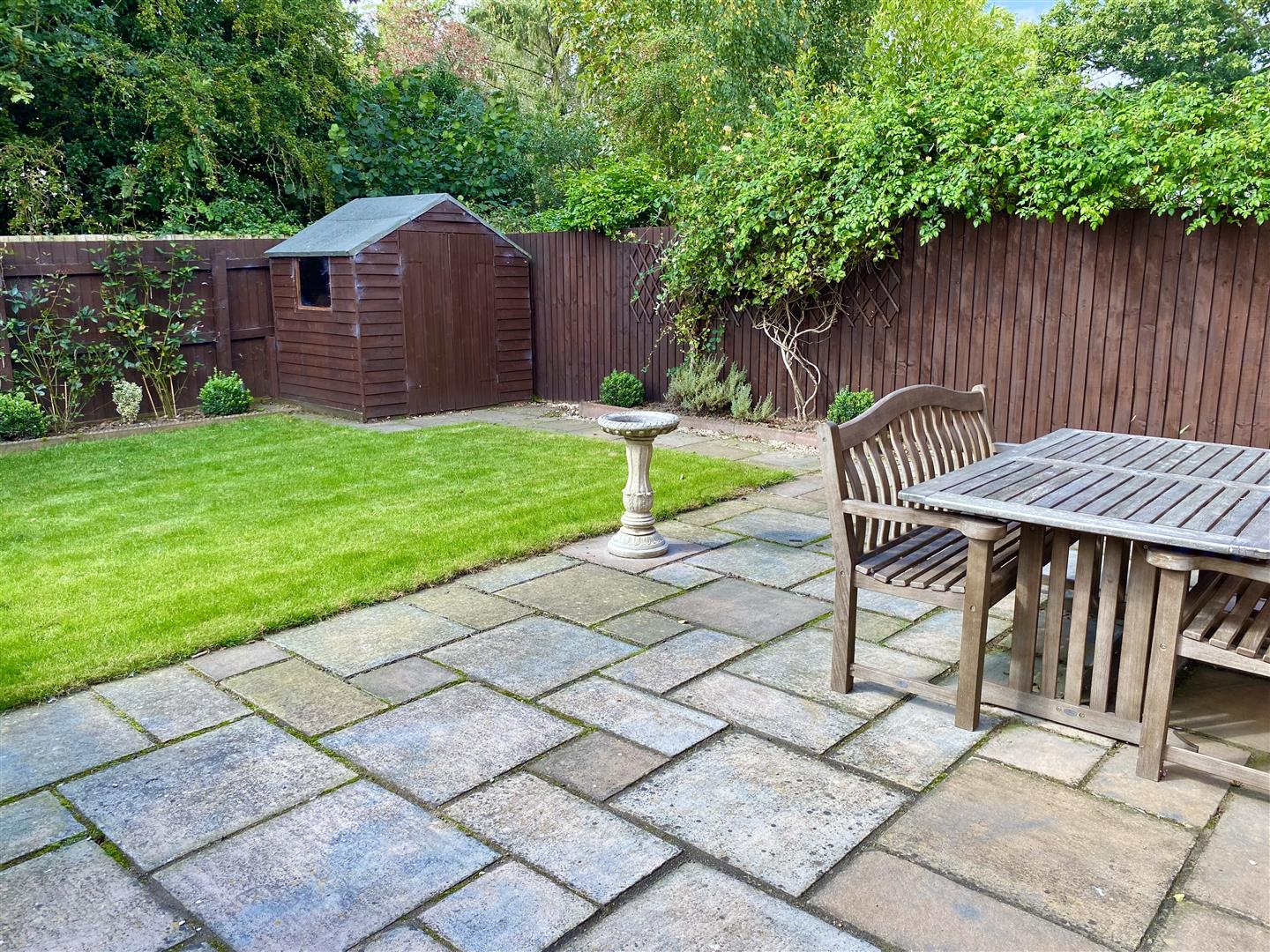 Neatly kept enclosed REAR GARDEN laid to lawn with paved patio and well kept shrub bed.