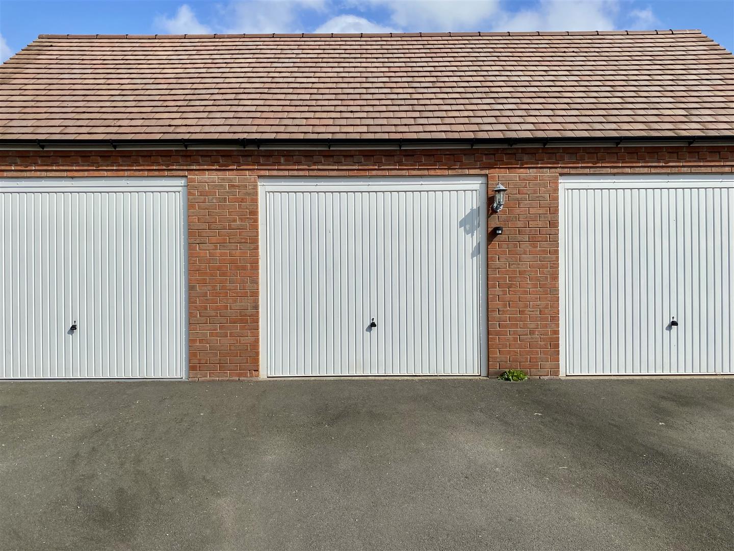 The property is approached over a concrete driveway providing a parking space, flanked by lawn with shrub beds and borders. Pathway to the reception area. There is a single garage located opposite the property with additional parking space.
