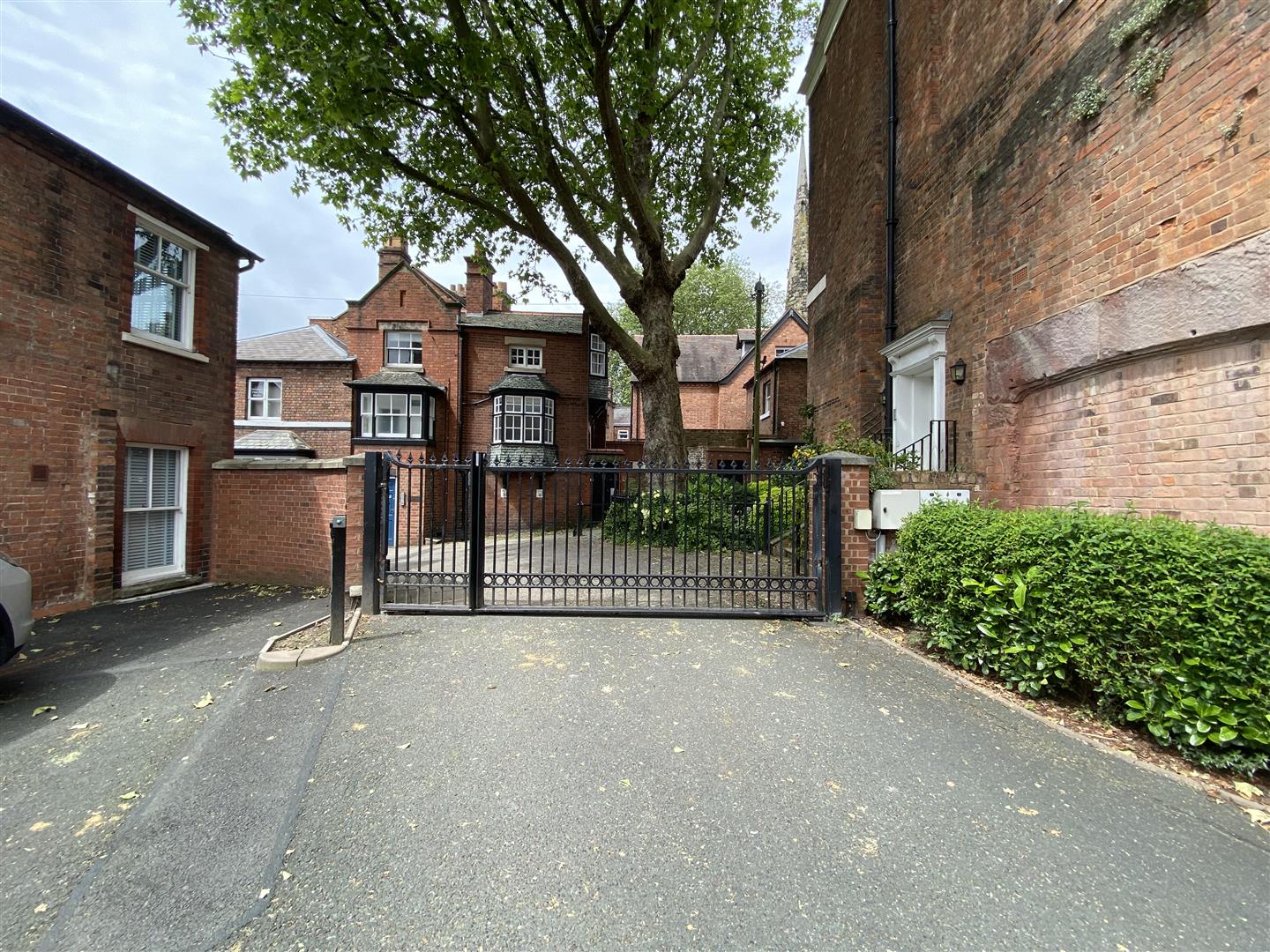 A secure gate allows access to steps which lead up to the communal parking area with a good sized allocated parking space. The private parking area is approached from St Mary's Court, via a ornamental wrought iron electric security gate.