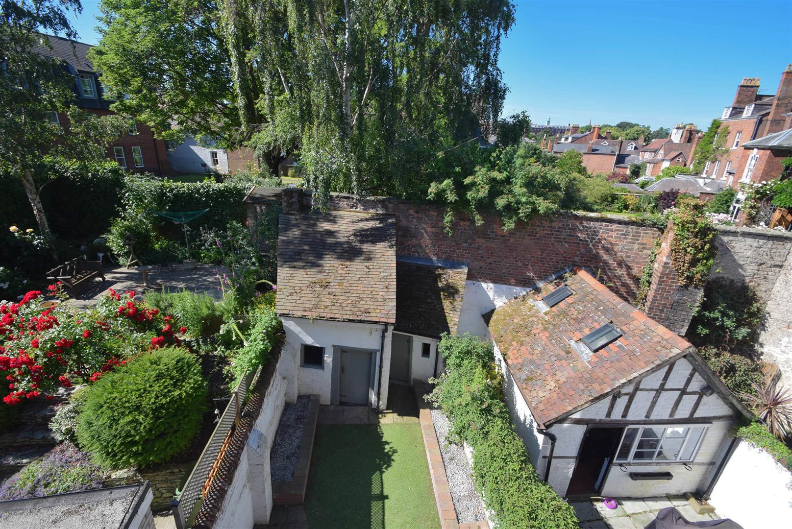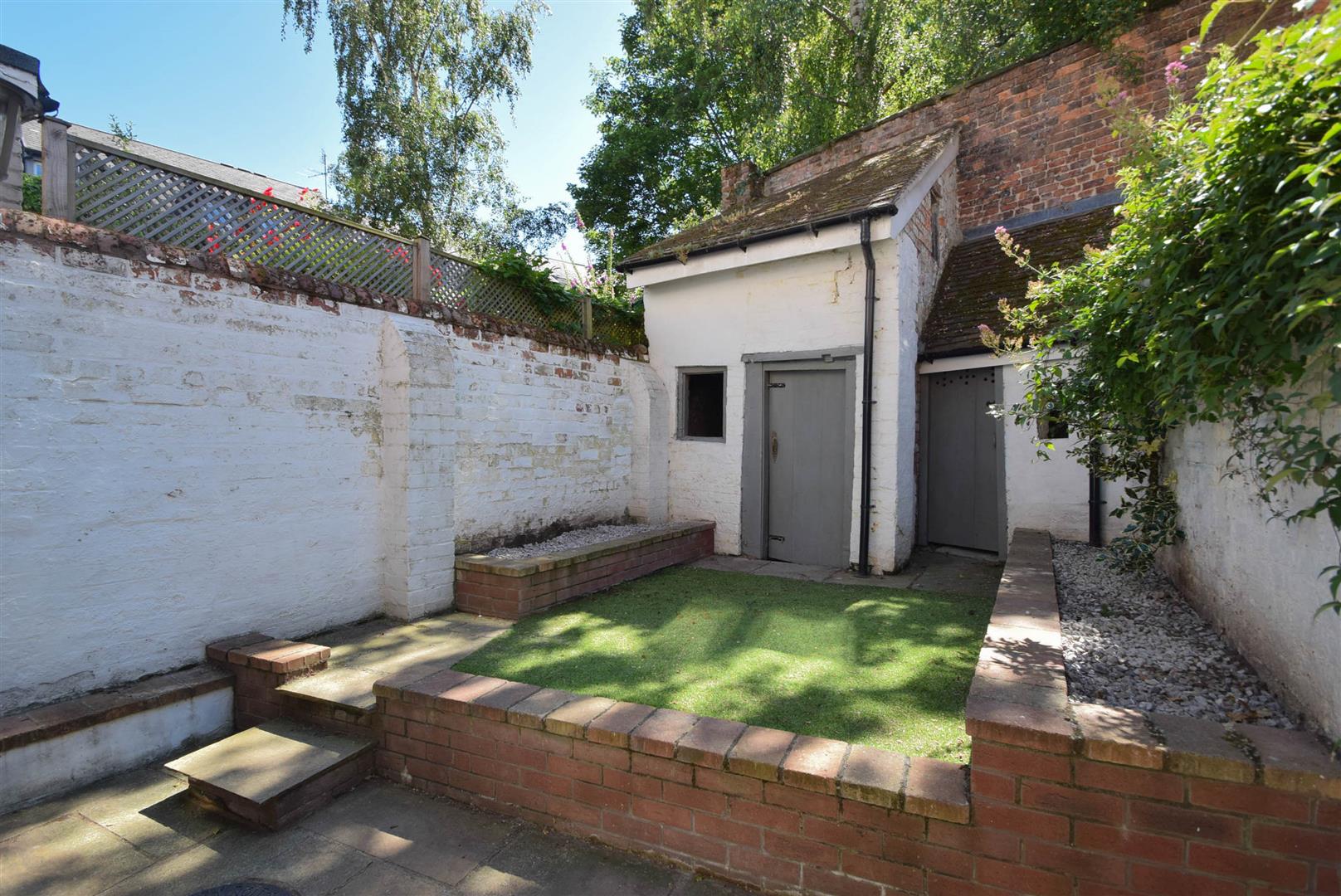 Delightful walled COURTYARD GARDEN which enjoys some afternoon sun and is in a private secluded position. 2 brick built stores.