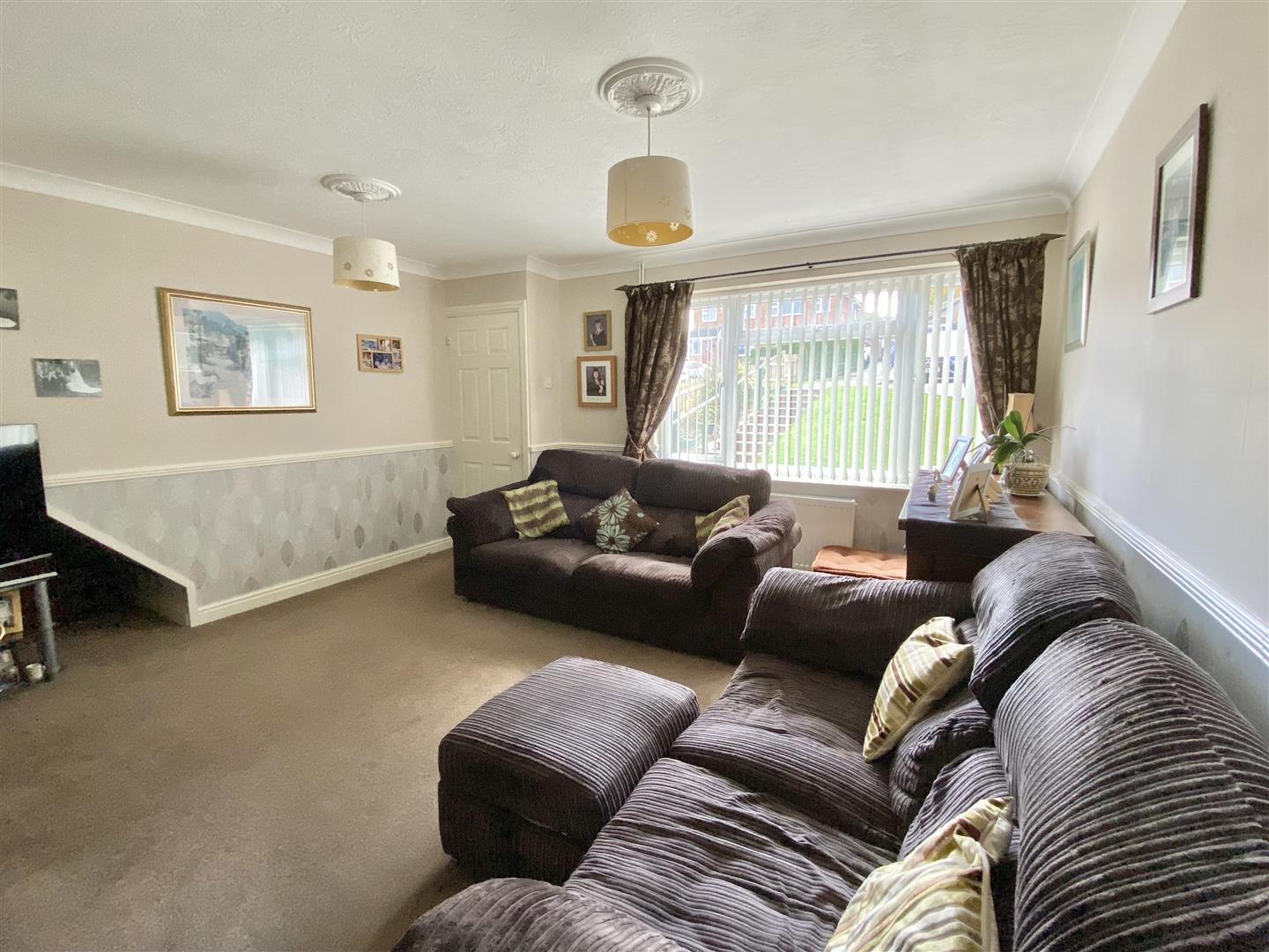Picture window overlooking garden and formal reception area to the front.
