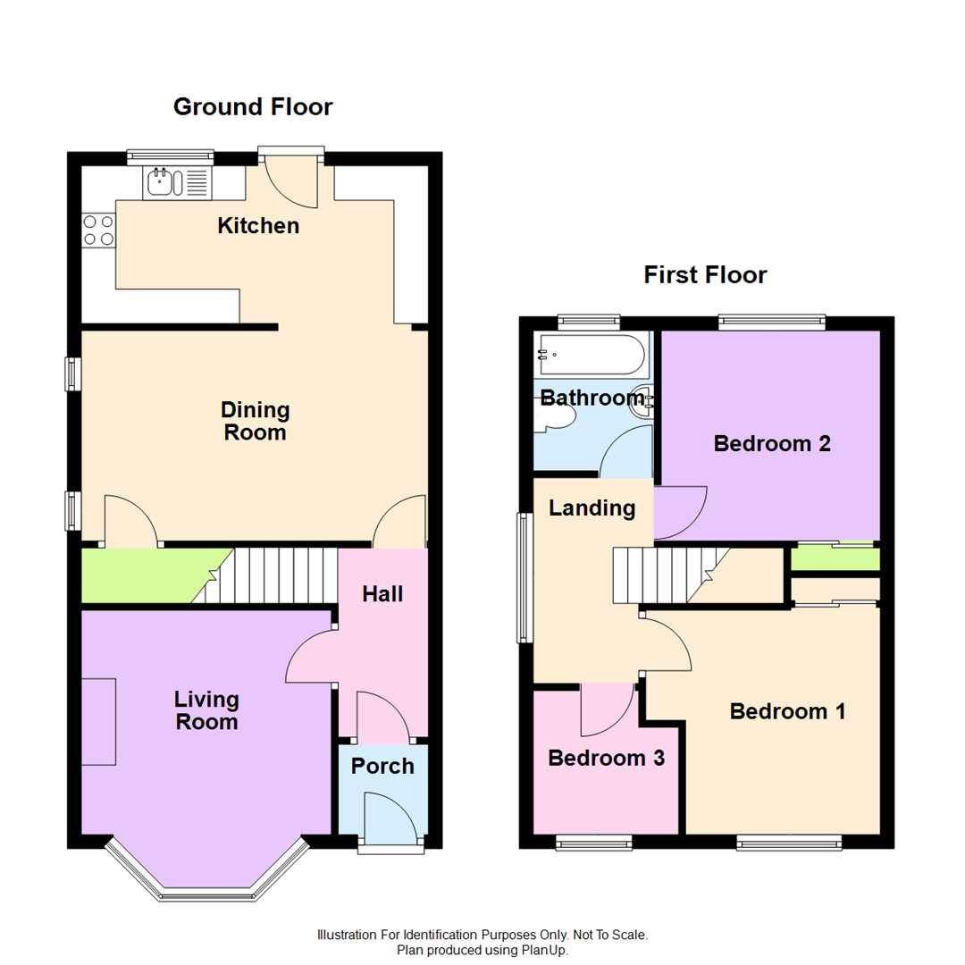 - Entrance porch, entrance hall, living room, dining room, kitchen