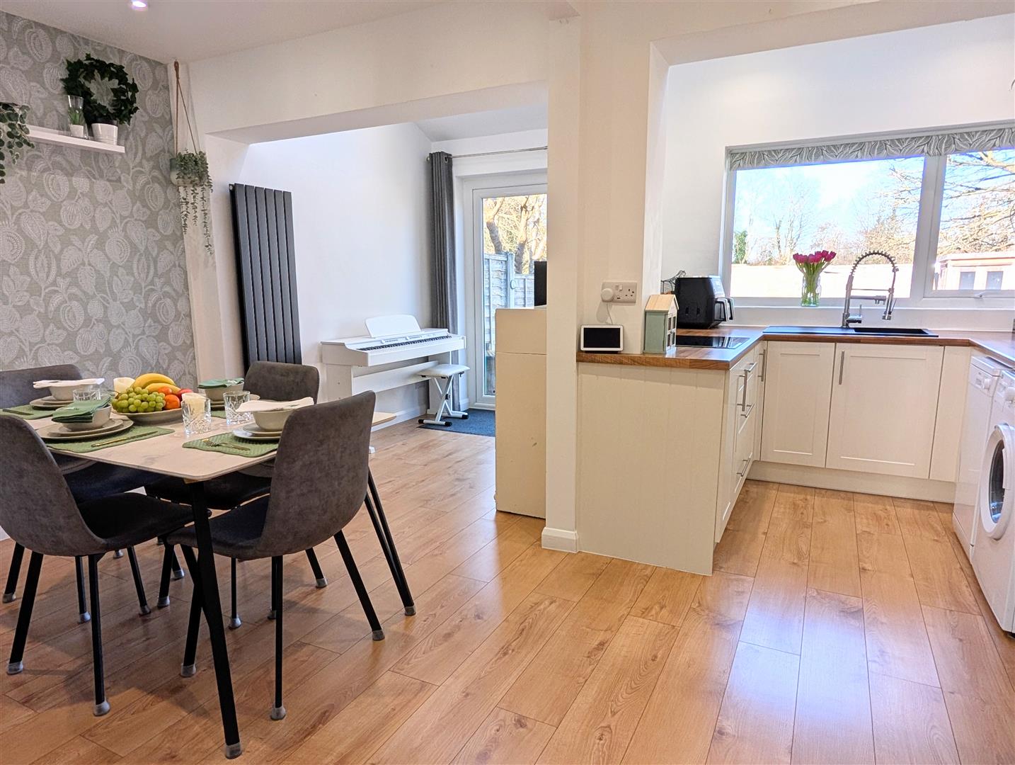 - Entrance hall, living room, kitchen/dining room