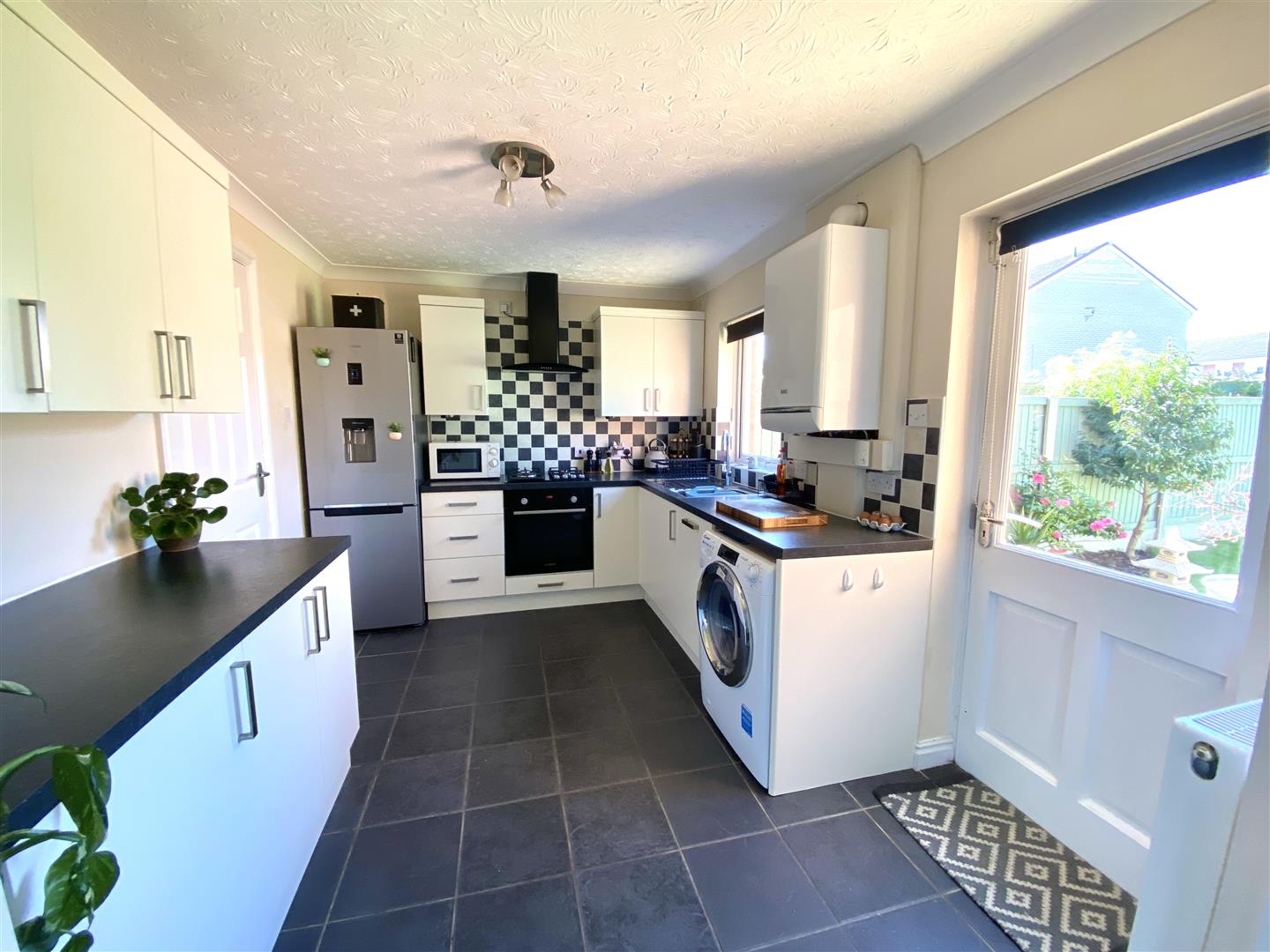 Kitchen - 2.64m x 3.66m (8'8" x 12'0") - Neatly appointed and fitted with a range of matching modern units with window and door allowing access to the rear garden