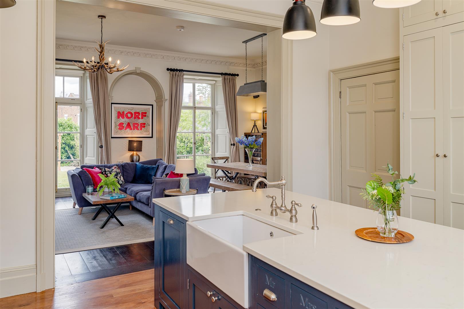 - Impeccably crafted bespoke kitchen seamlessly leading through to sitting room/dining room.