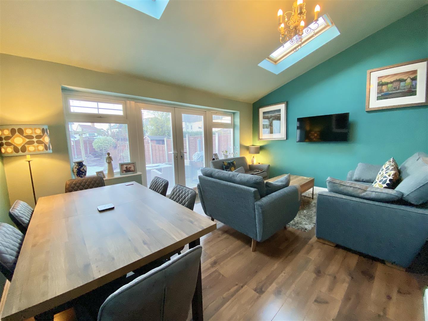 - Sitting room, living room, kitchen