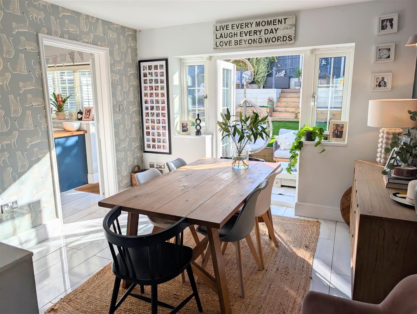 Dining Room - 3.33m x 3.02m (10'11" x 9'11") - Glazed French doors and side screens opening onto the landscaped rear garden