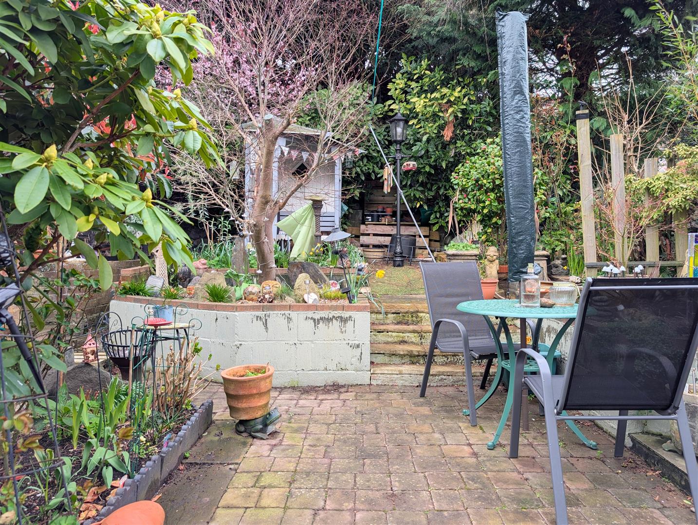 - Enclosed, terraced rear garden with patio area