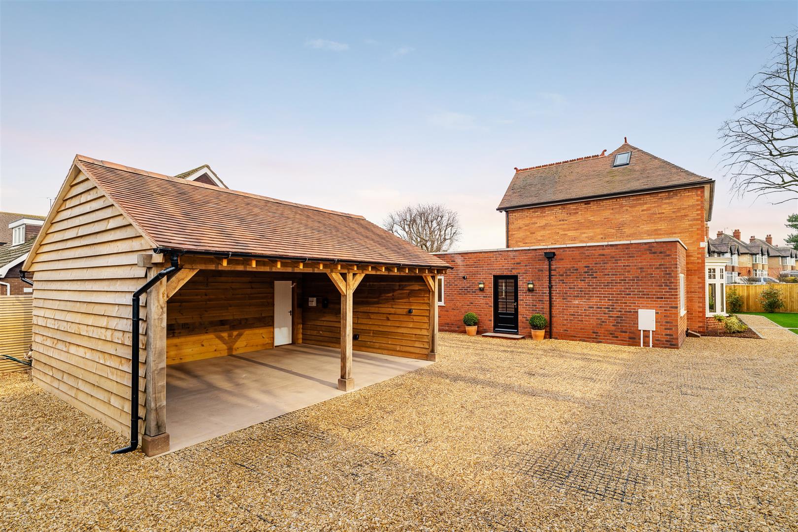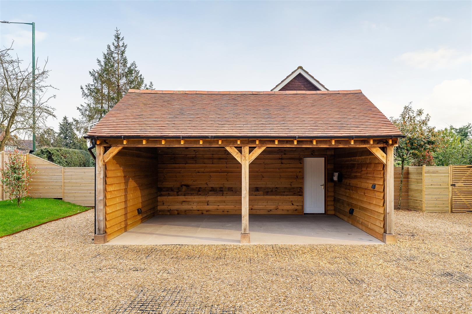 - Car port with EV charging, electrics, lighting and gravel grid driveway