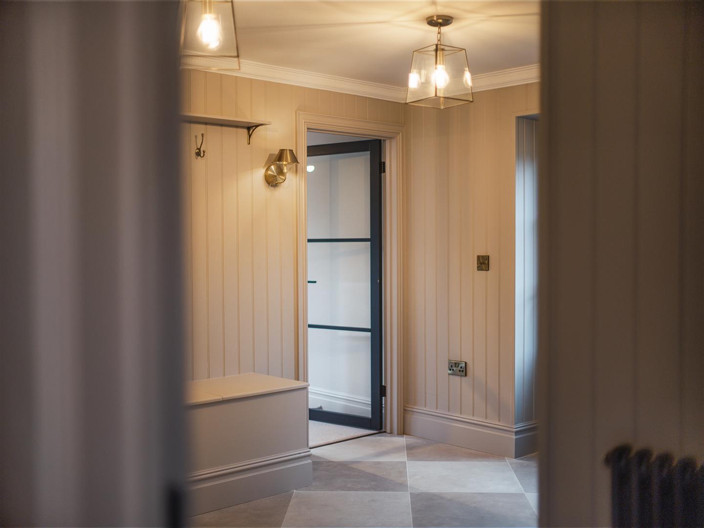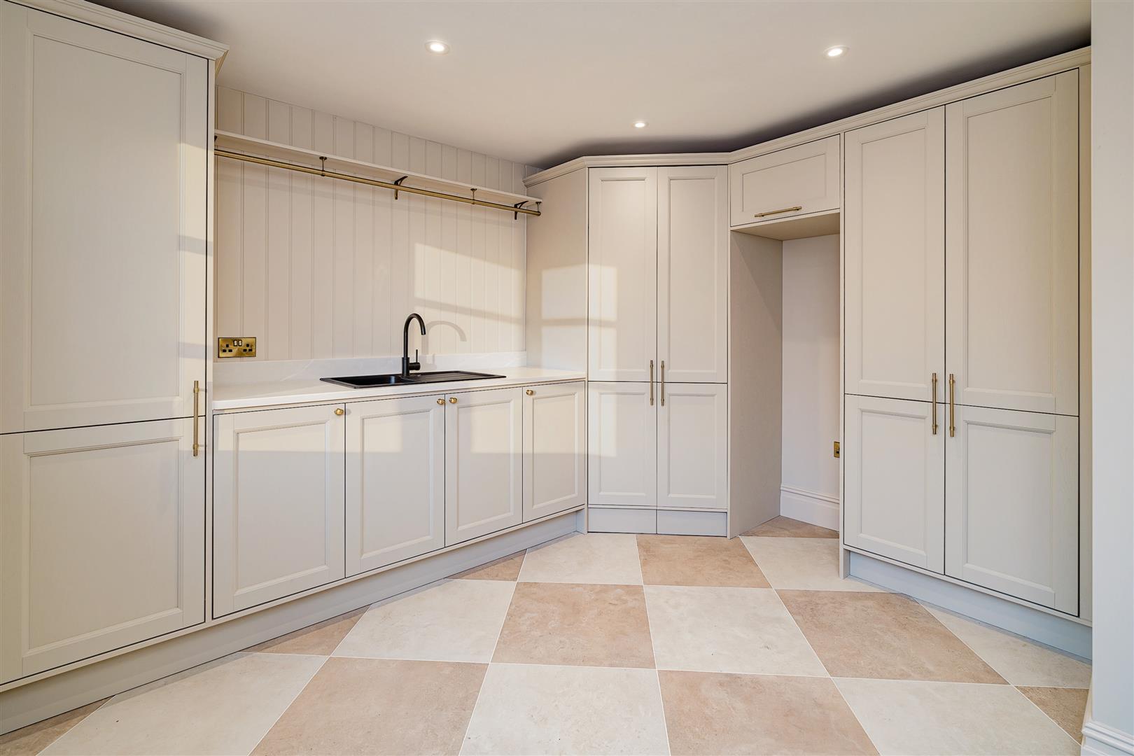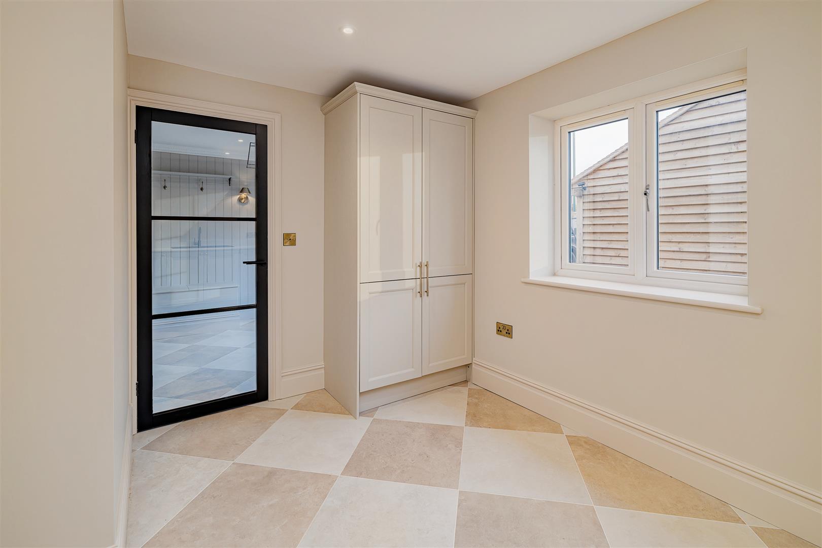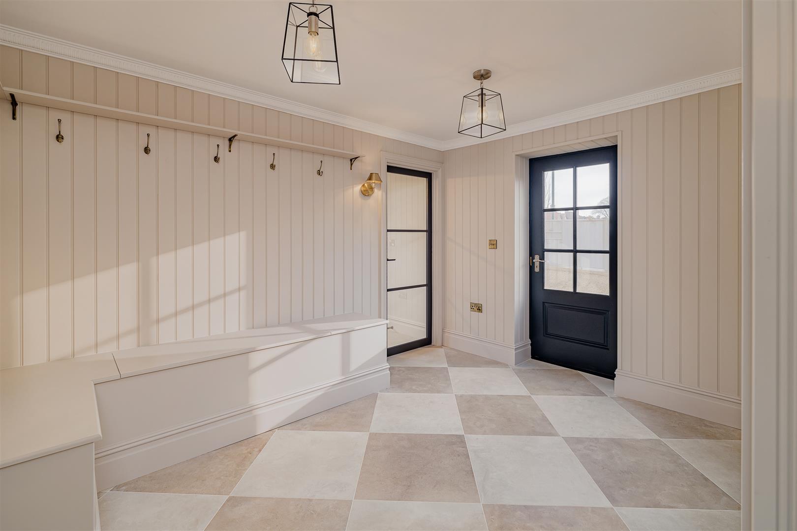 - Large laundry room with quartz work tops, boot room & storage room