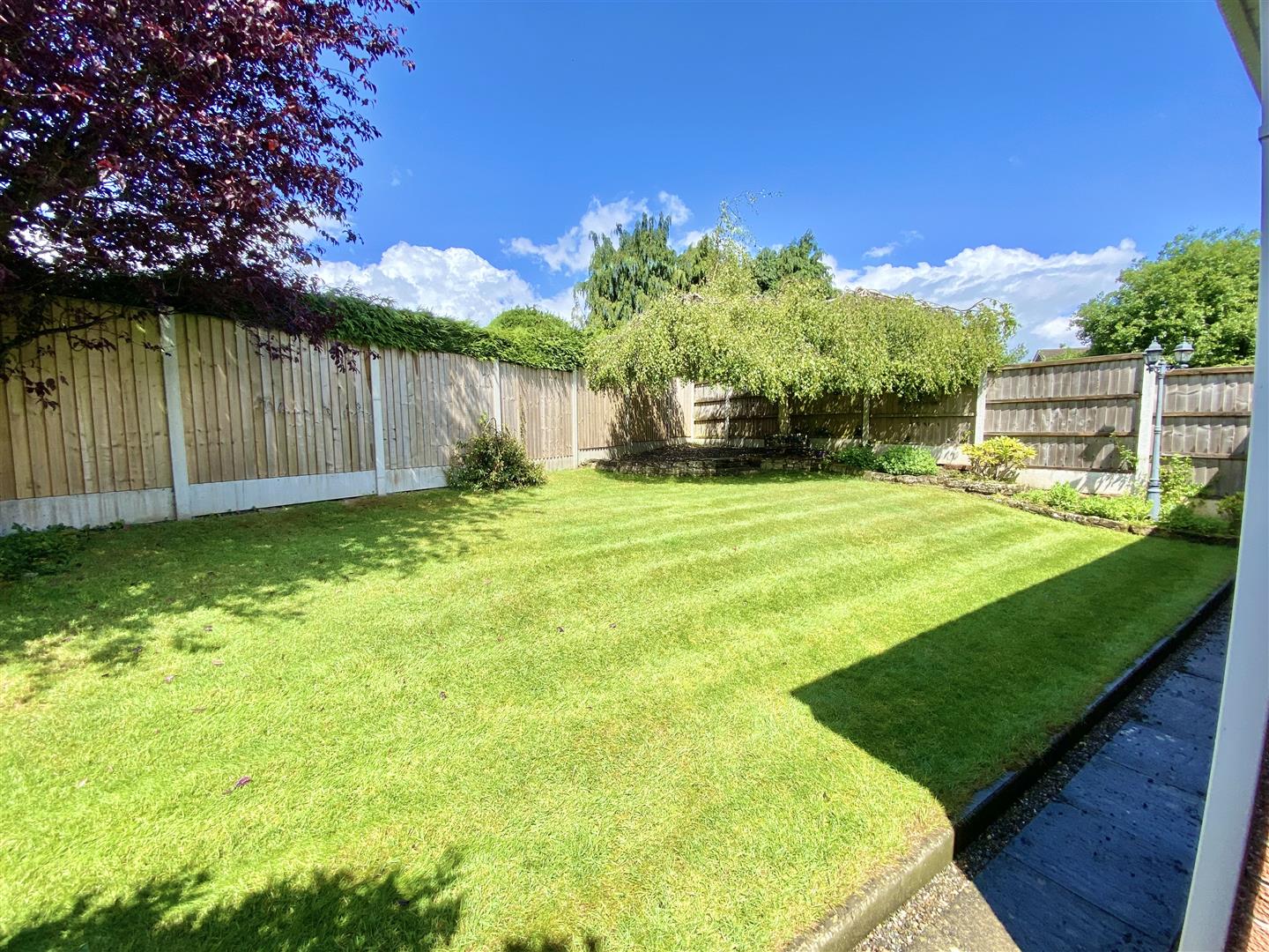A door to the side allows access to a side passage leading to the neatly kept REAR GARDEN which is served by a paved pathway and is laid predominantly to lawn with neatly kept shrubs and trees. The whole well enclosed on all sides.