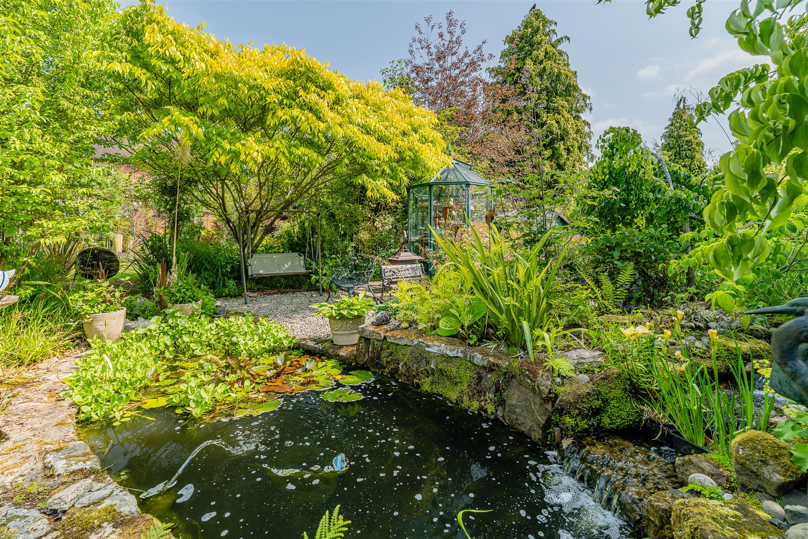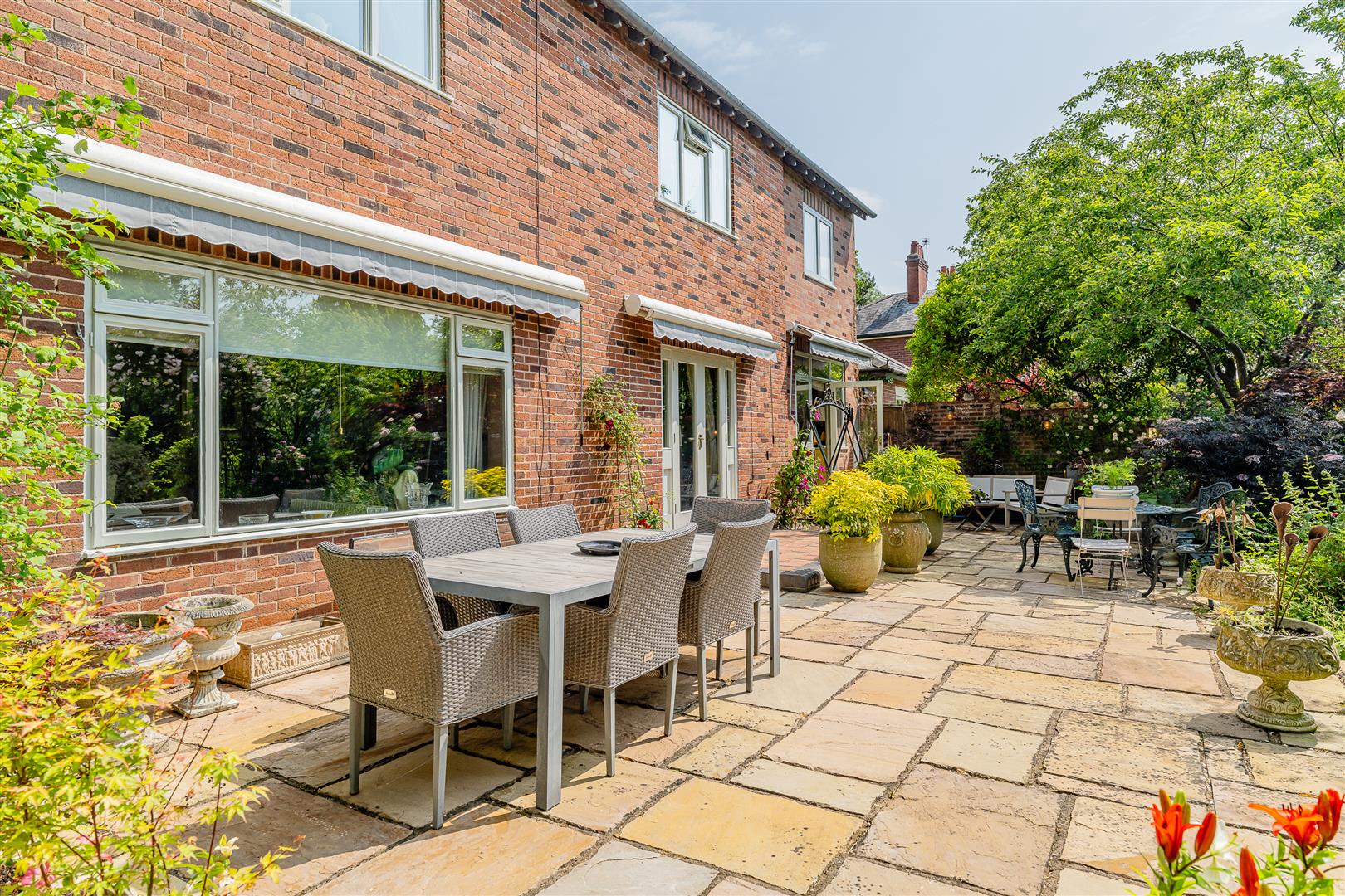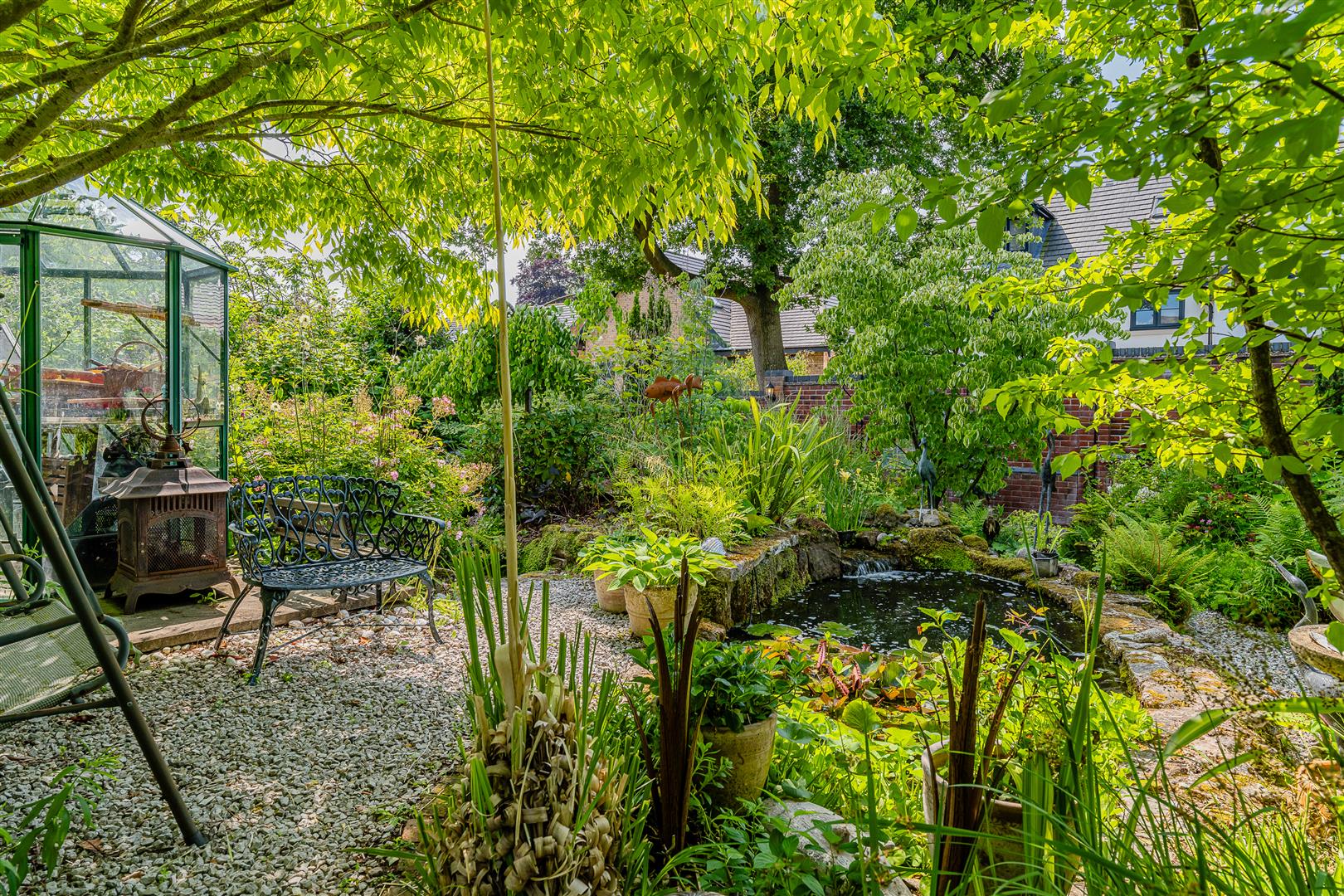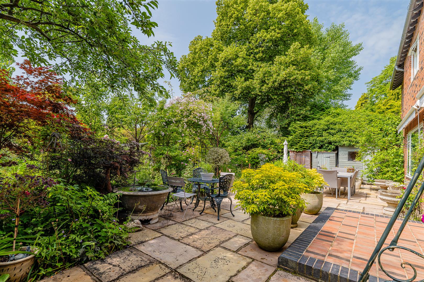 To the rear, there is a stunning well stocked landscaped garden containing a wide variety of specimen trees and shrubs, established herbaceous displays, ornamental pond, extensive paved patio and terrace, ideal for outside entertaining and alfresco dining, with ambient lighting located throughout the whole of the garden. The garden enjoys a pleasant, well screened south facing aspect. Greenhouse. Garden stores.