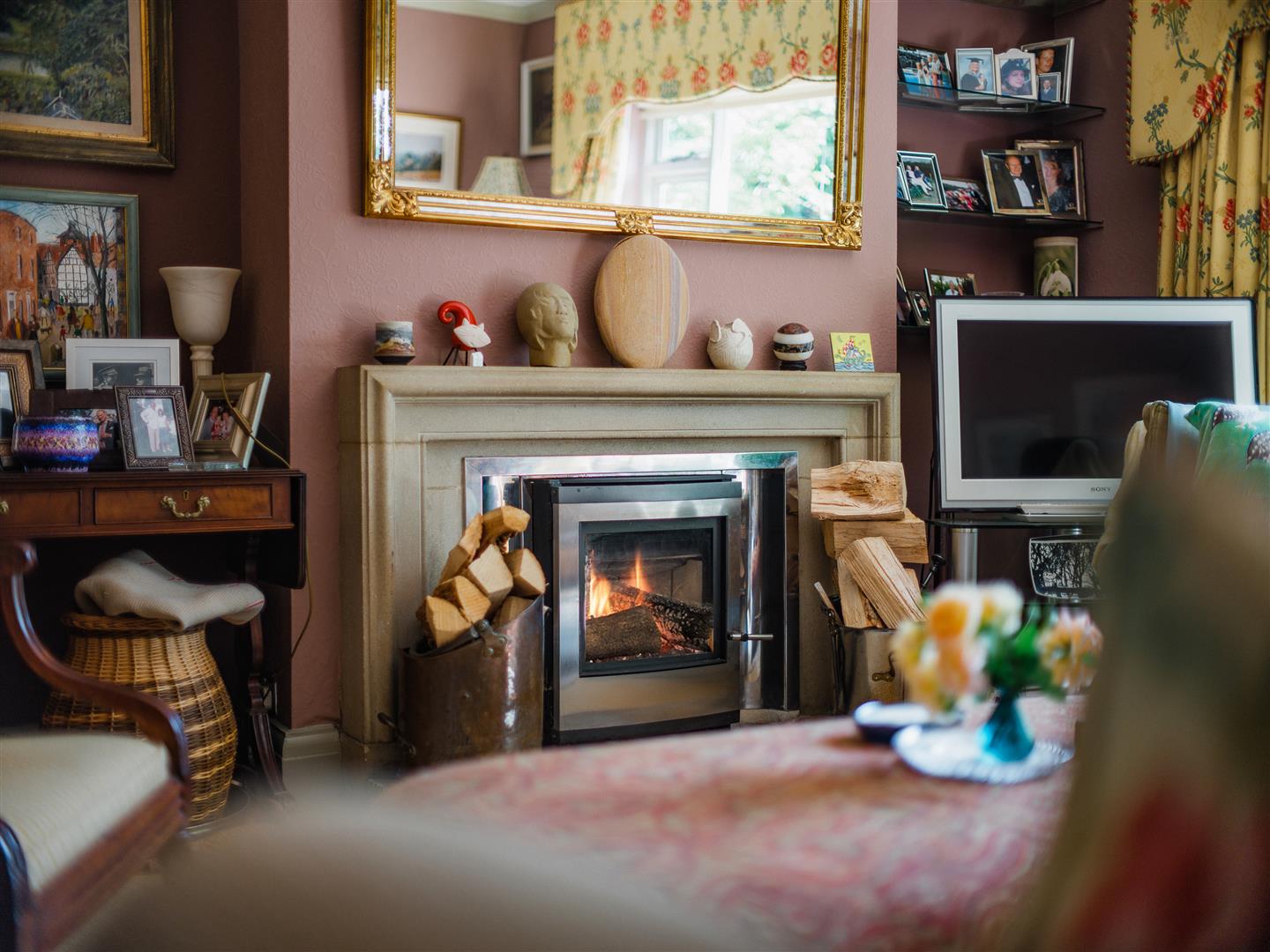 Drawing Room - 6.07m x 4.55m (19'11" x 14'11") - Wood burning stove with stone surround and mantel