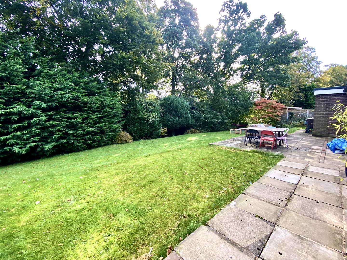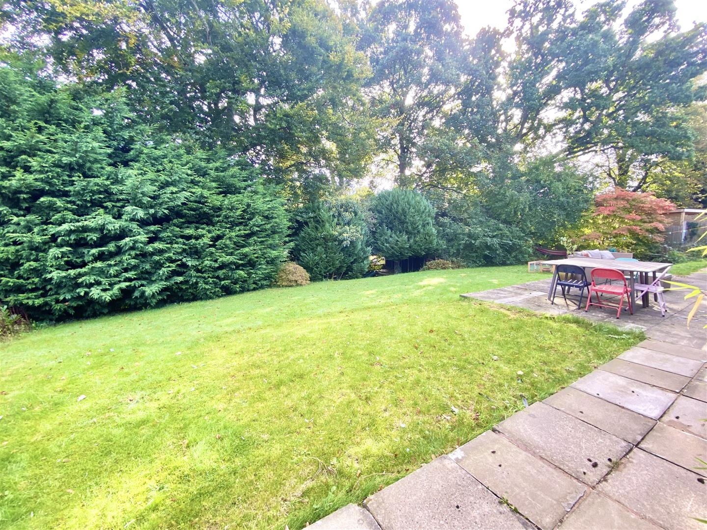 There is a particularly good sized REAR GARDEN which is laid predominantly to lawn with an extensive paved patio which extends the width of the property, providing an ideal outside entertaining space. The garden is well screened by established shrubs and established trees. Garden store shed. To the side there is a further paved area with gateway access to the front. Outside lighting points. Cold water supply tap.