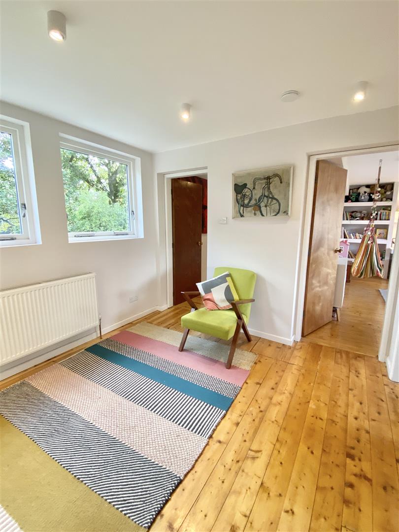 From the entrance hall, a STAIRCASE with hand rail and balustrade rises to FIRST FLOOR LANDING / STUDY AREA (8'5" x 23'4") with waxed polished boarded floor, large cupboard enclosing hot water cylinder and shelving. Two windows overlooking the rear garden.