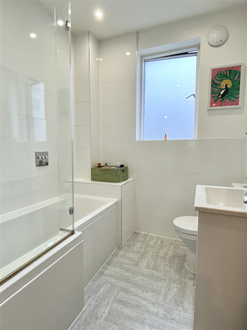 Bathroom - Neatly fitted with panelled bath with shower over and glass shower screen
