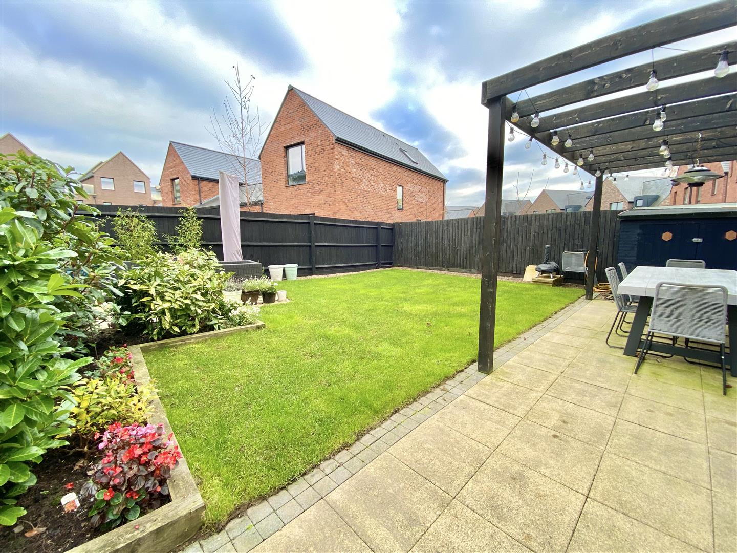 There is an attractive REAR GARDEN laid to lawn with large paved patio area with Pergola over, raised floral and shrubbery beds, further patio seating area. The whole enclosed by closely boarded wooden fencing.