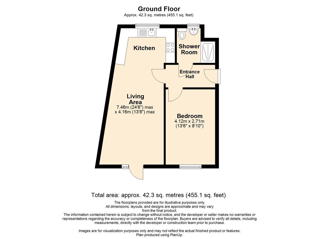 The apartment features a generously sized bedroom, offering a peaceful retreat at the end of the day. This comfortable space provides ample room for furnishings and personal touches. Adjacent to the bedroom is a well-maintained shower room, fitted with contemporary fixtures and fittings, ensuring convenience and comfort for residents.
