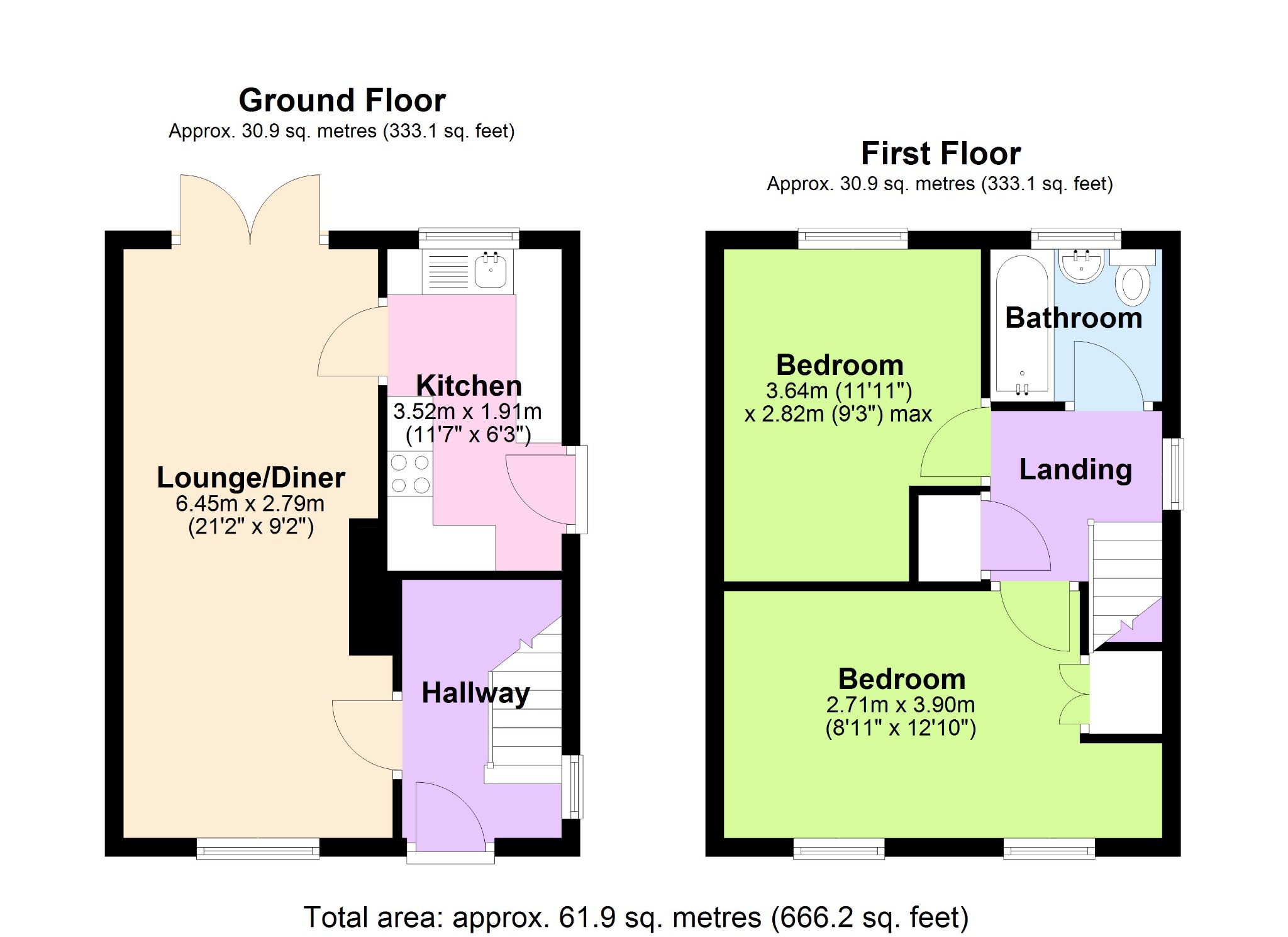 Ascending to the first floor, the property continues to impress with its generous bedroom sizes. Both bedrooms offer comfortable and private retreats, providing plenty of space for wardrobes and additional furnishings. These rooms are designed to ensure a peaceful night's sleep, making them ideal for individuals, couples, or a small family. The stylish family bathroom serves both bedrooms, featuring modern fixtures and fittings that create a serene and functional space for daily routines.