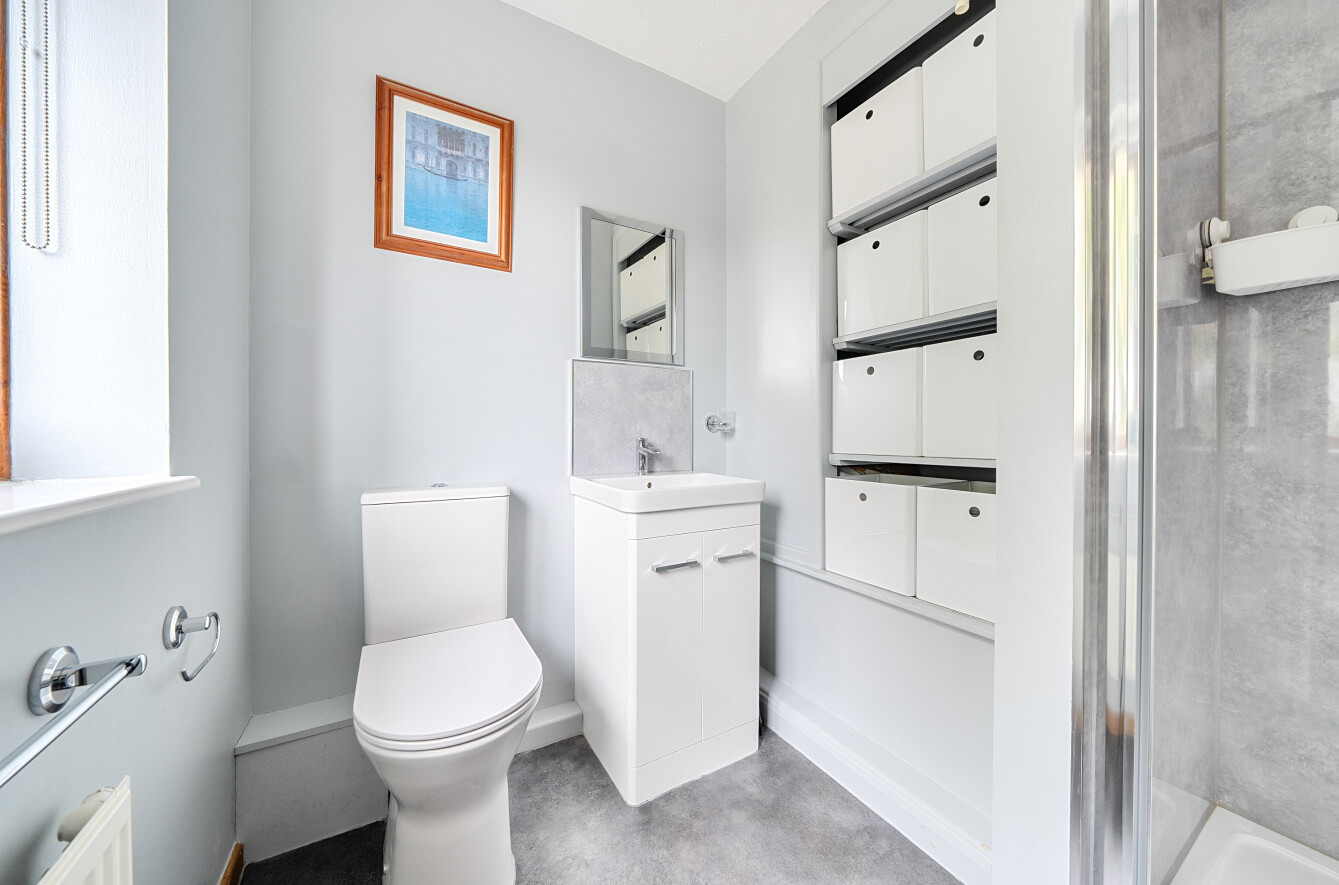 There is a useful gravel side area with garden shed along with a flower garden and ornamental pond. The garden includes several fruit trees and the enclosure at the bottom of the garden which has been used as a chicken run.