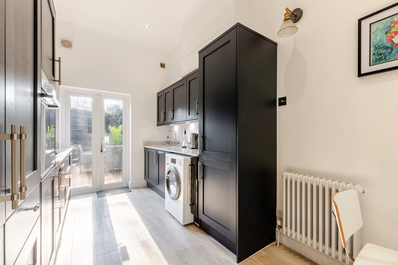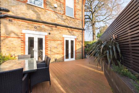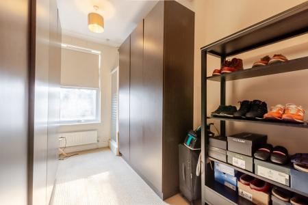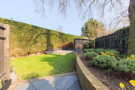 The larger than average garden is set to the side and has been thoughtfully landscaped to feature a lawn, raised flower beds and substantial screening to the road. There is a fantastic garage room with full power that could be used as a gym, summerhouse or an office from home.