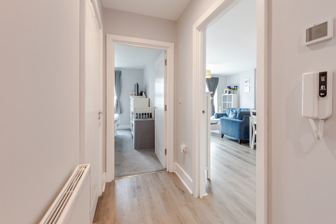 - L-shaped hallway with a cupboard fitted as a work-from-home office