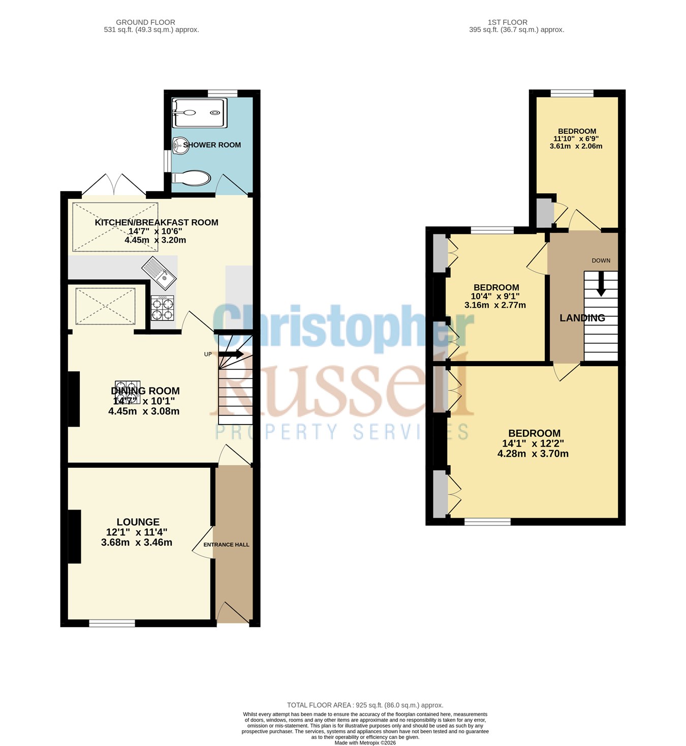 - Paved rear garden extending approximately 50ft