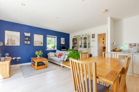 The entrance hall to the apartment has good storage facilities and the door leads off to an open planned dual aspect lounge/diner with beautifully integrated kitchen, and doors leading to a private balcony overlooking a peaceful parkland area.