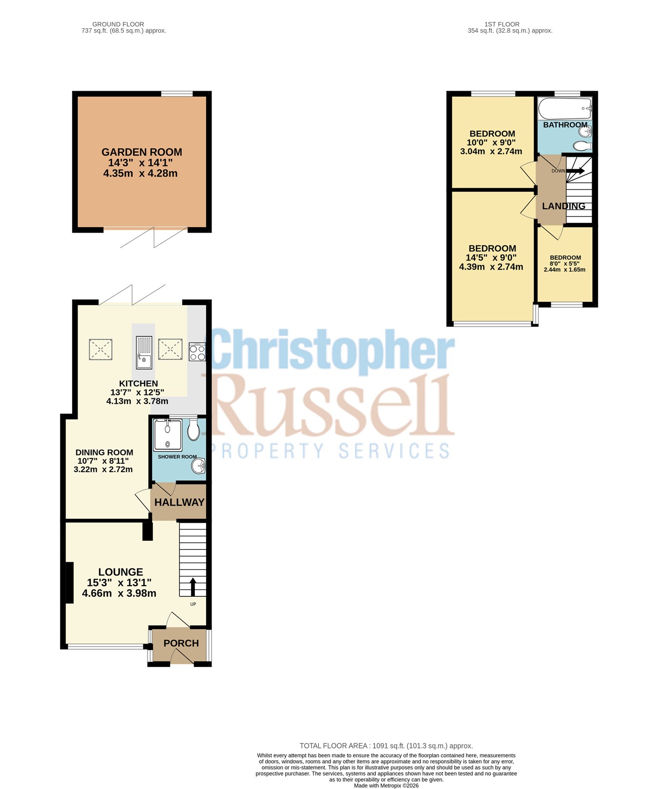 Externally, there is off-street parking for two cars and a rear garden extending approximately 90ft, newly laid with lawn and featuring the impressive garden room/cabin.