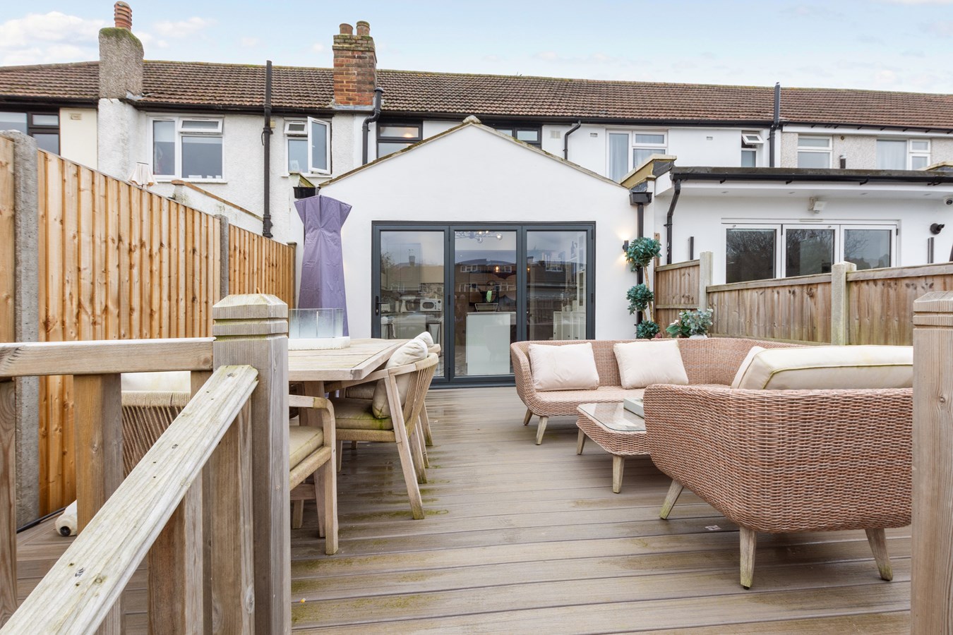 Three-bedroom terraced house, extended and fully refurbished in 2023, finished to an exceptionally high standard and meticulously maintained, with the added benefit of a stunning garden room/cabin at the end of the rear garden.