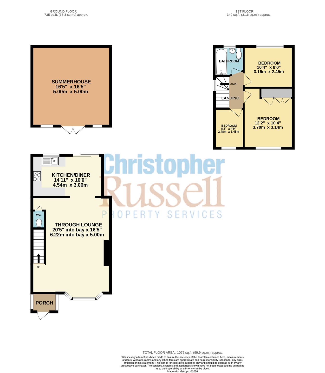 Having been extended to the ground floor the property comprises an entrance hall, lounge, WC and an open planned kitchen/diner. Upstairs, there is a family bathroom, two double bedrooms and a single room.