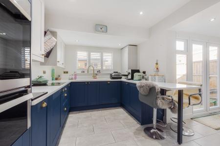 - Open-plan kitchen/breakfast room with modern fitted kitchen, quartz work surfaces, and integrated appliances