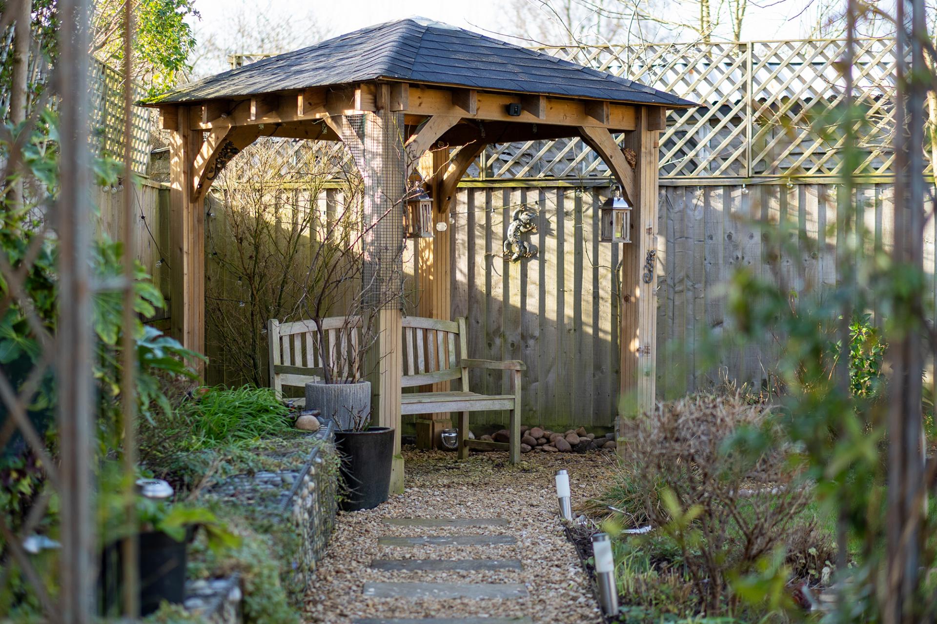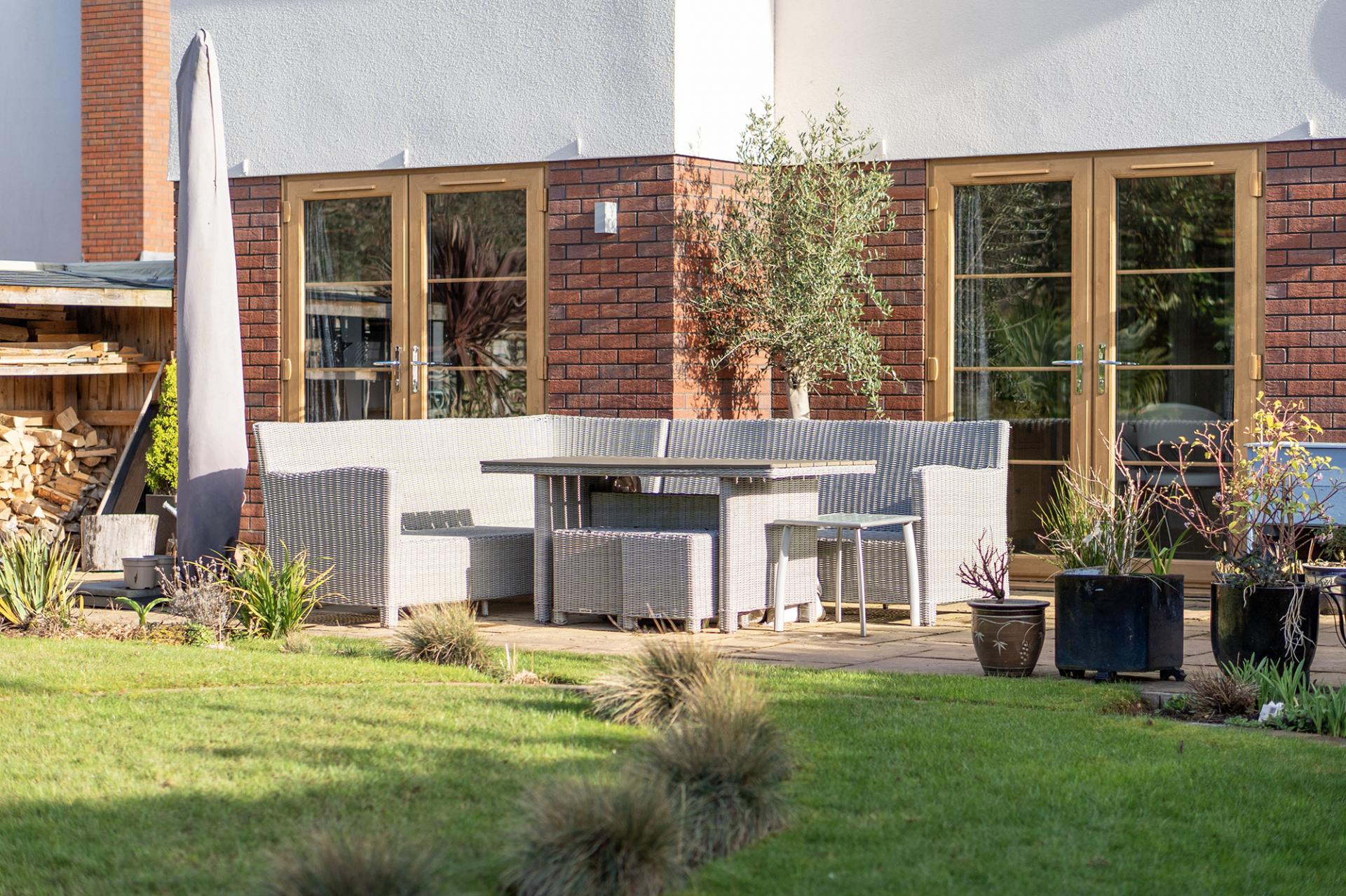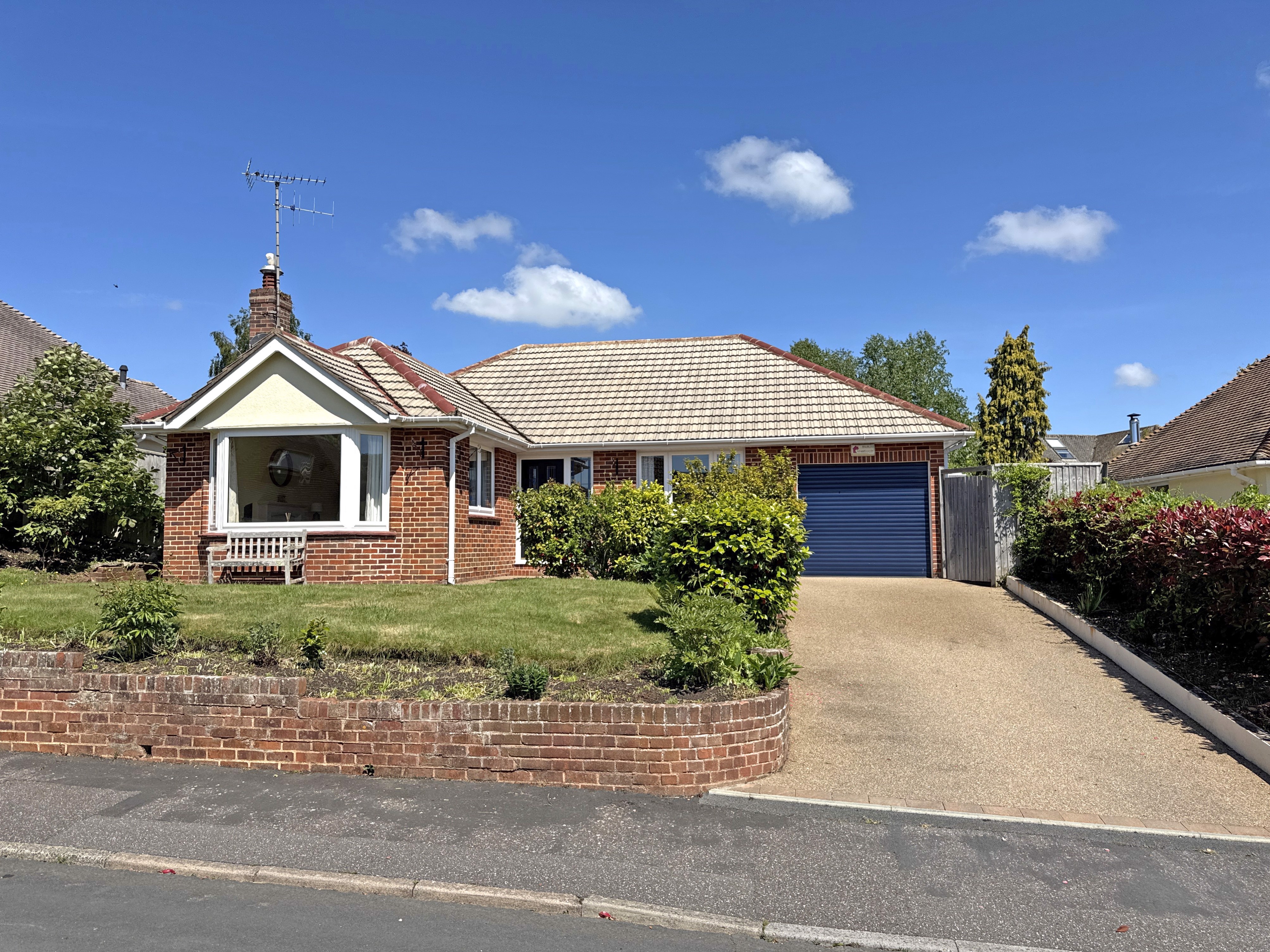 The house stands on a landscaped level plot with off-road parking for three cars and a lawned front garden. A large, double garage has many double sockets and a water tap. To the rear, enjoying a westerly aspect, the garden is beautifully arranged with a large patio, pergola, lawn and densely stocked, colourful beds and borders. There is also a greenhouse on the south elevation of the property, electric points and water tap by the greenhouse.