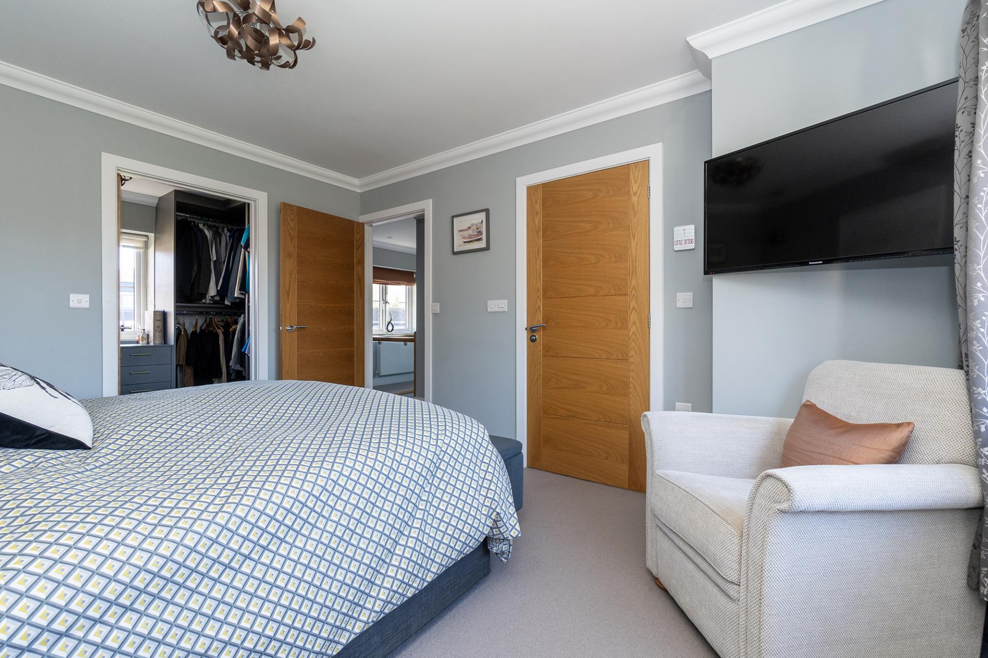 An executive, four bedroom detached house currently arranged with three double bedrooms and a dressing room. High quality, contemporary finish, well placed for the commute to Exeter and less than four miles to the sea.