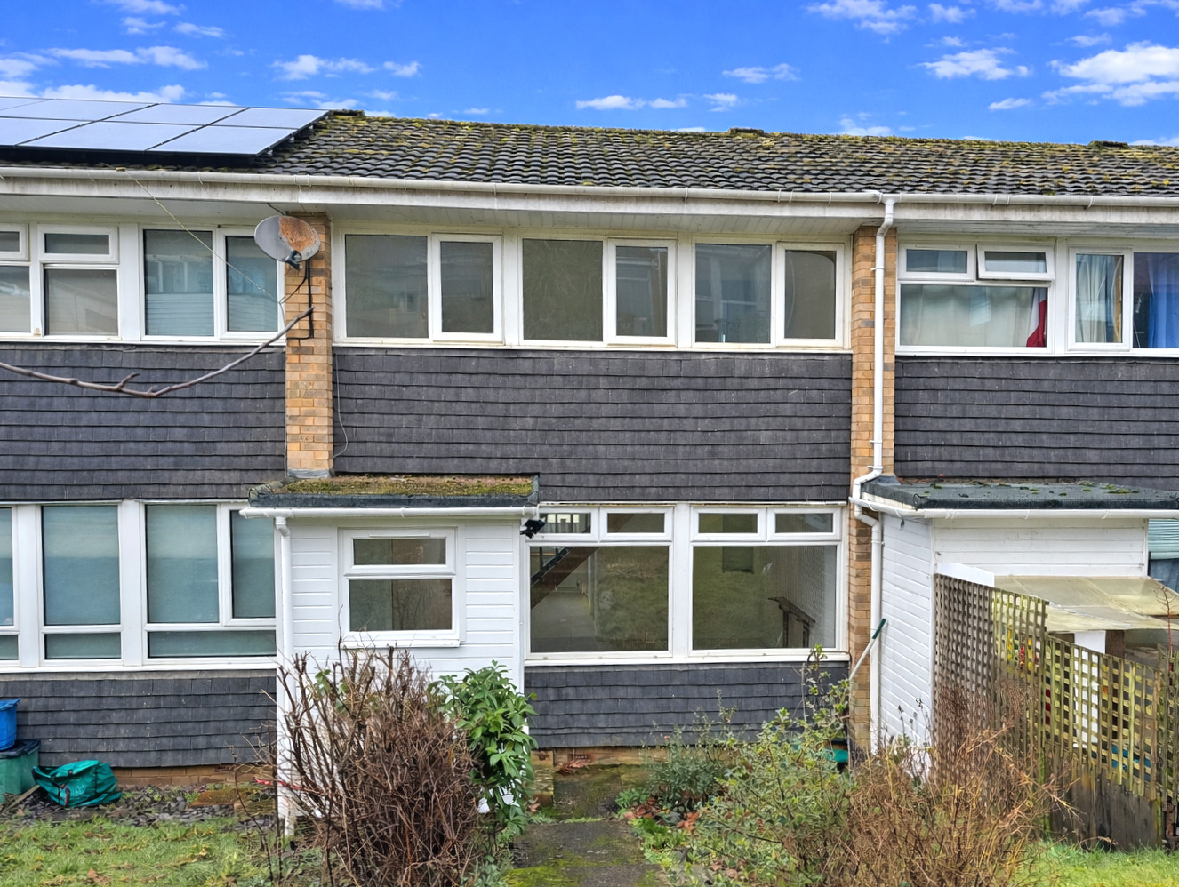 A mid-terrace house occupying an elevated position overlooking the village to countryside beyond, well placed for those looking to commute to the surrounding area.