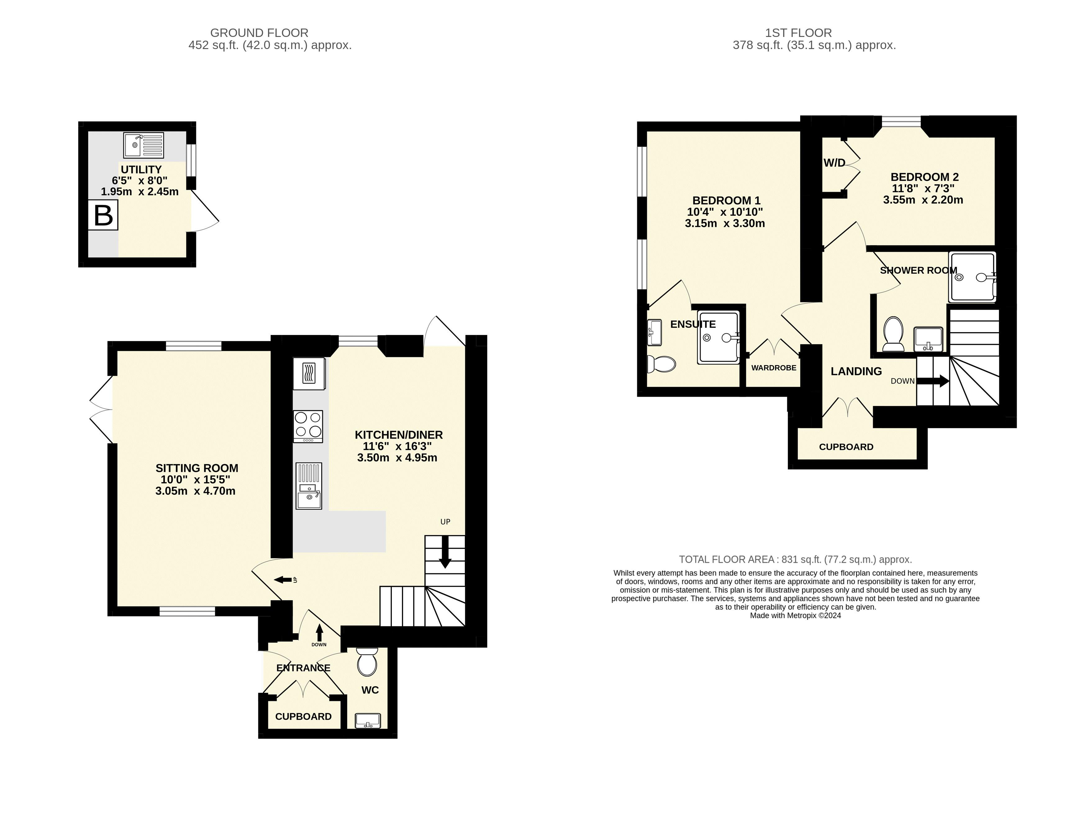 The first floor offers two bedrooms, the master bedroom having a built-in wardrobe along with an en-suite shower room fitted with an attractive white suite. There is a separate shower room accessed from the landing which again is beautifully fitted with a white suite.