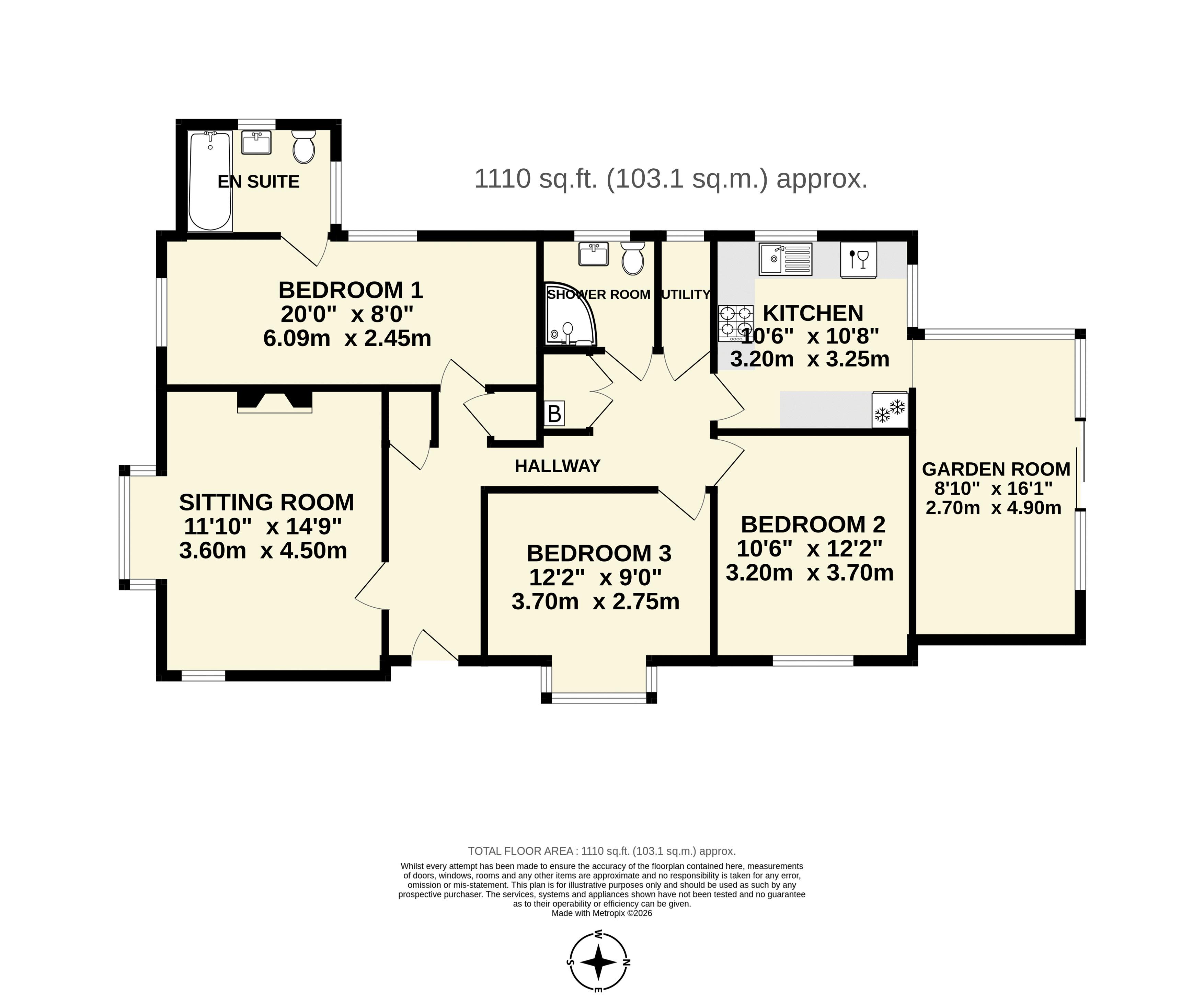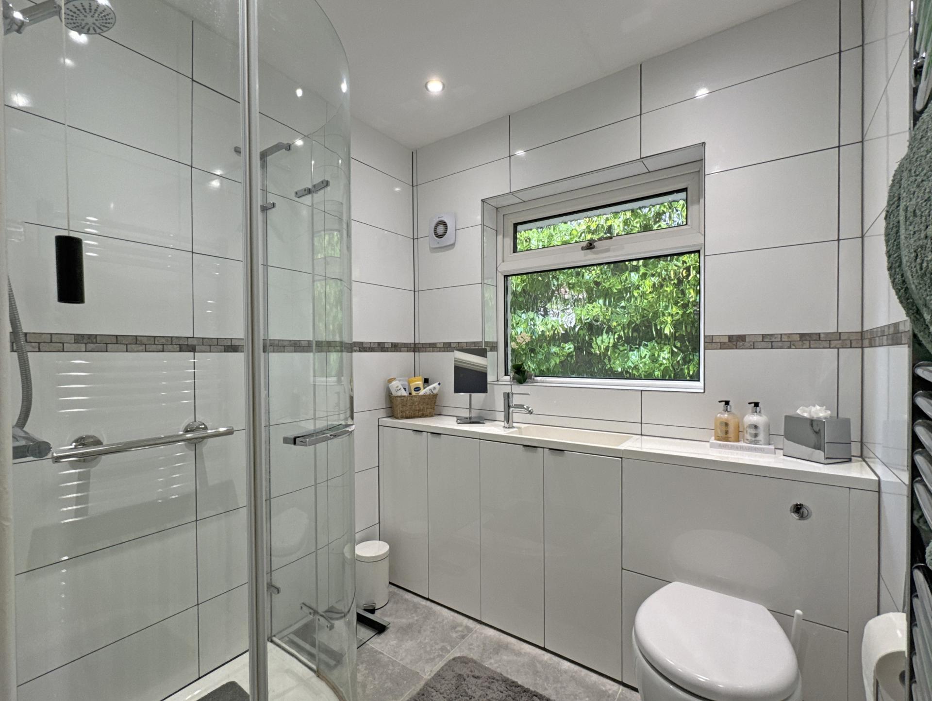 The main bedroom is dual aspect and features an en suite bathroom with mains shower. There are two further double bedrooms, a modern shower room and a useful utility cupboard with plumbing for a washing machine.