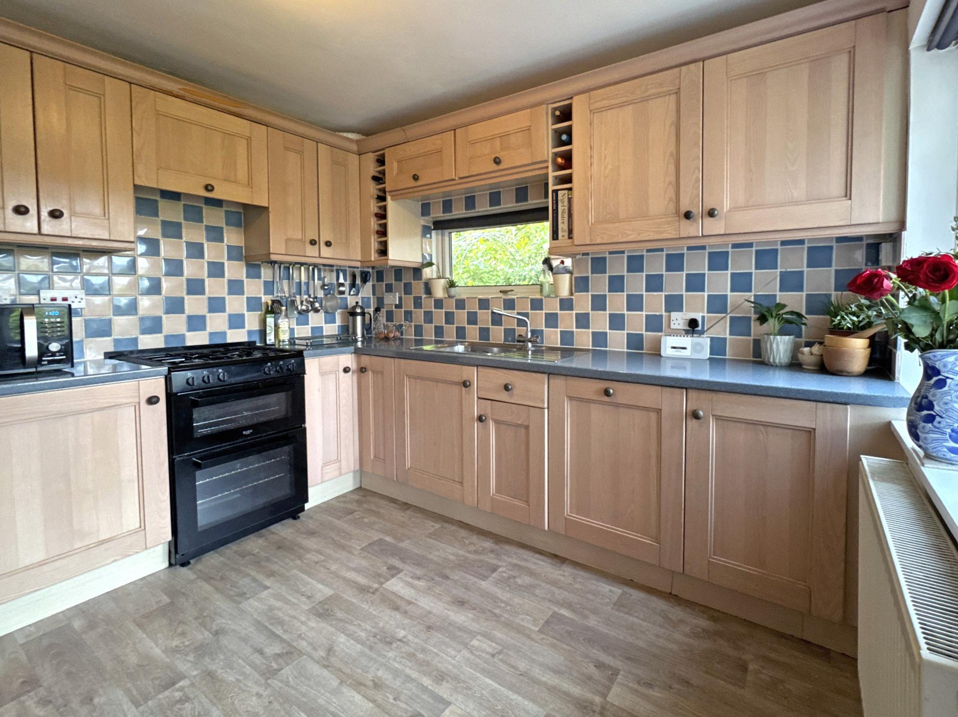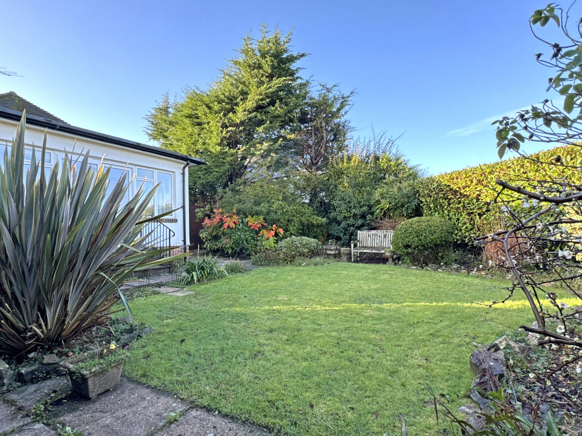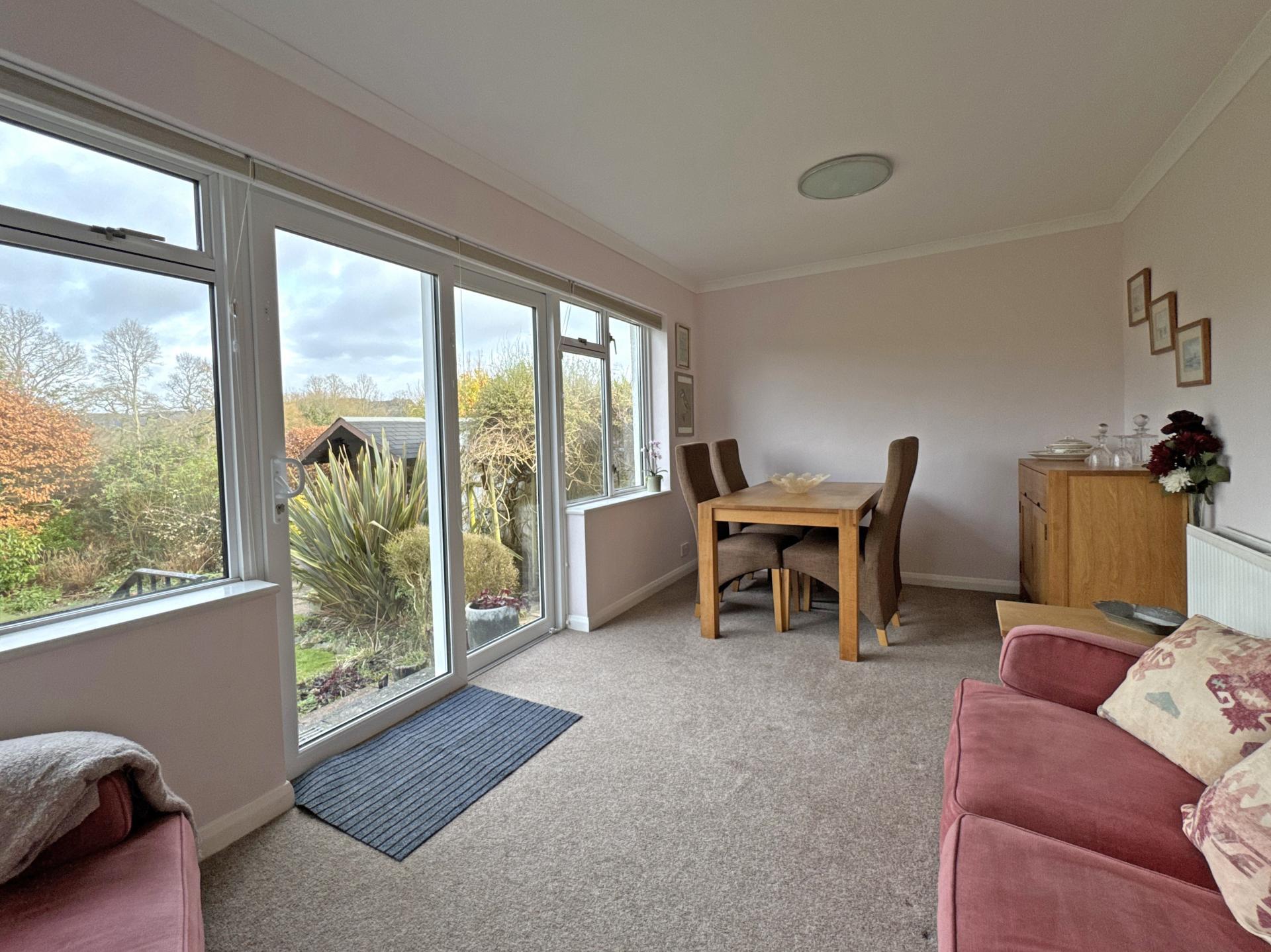 Offered for sale with no ongoing chain, this detached bungalow has gas central heating, double glazing and is well presented throughout. An L-shaped hallway has storage and linen cupboards, the latter housing a gas combination boiler, installed in 2025. A dual aspect sitting room has a south facing bay window to the front and a remotely controlled, gas flame fireplace. The kitchen is situated to the rear of the bungalow, again dual aspect with good storage and a built-in dishwasher and fridge/freezer. An adjoining garden/dining room has a fabulous view over neighbouring fields to hillsides beyond.