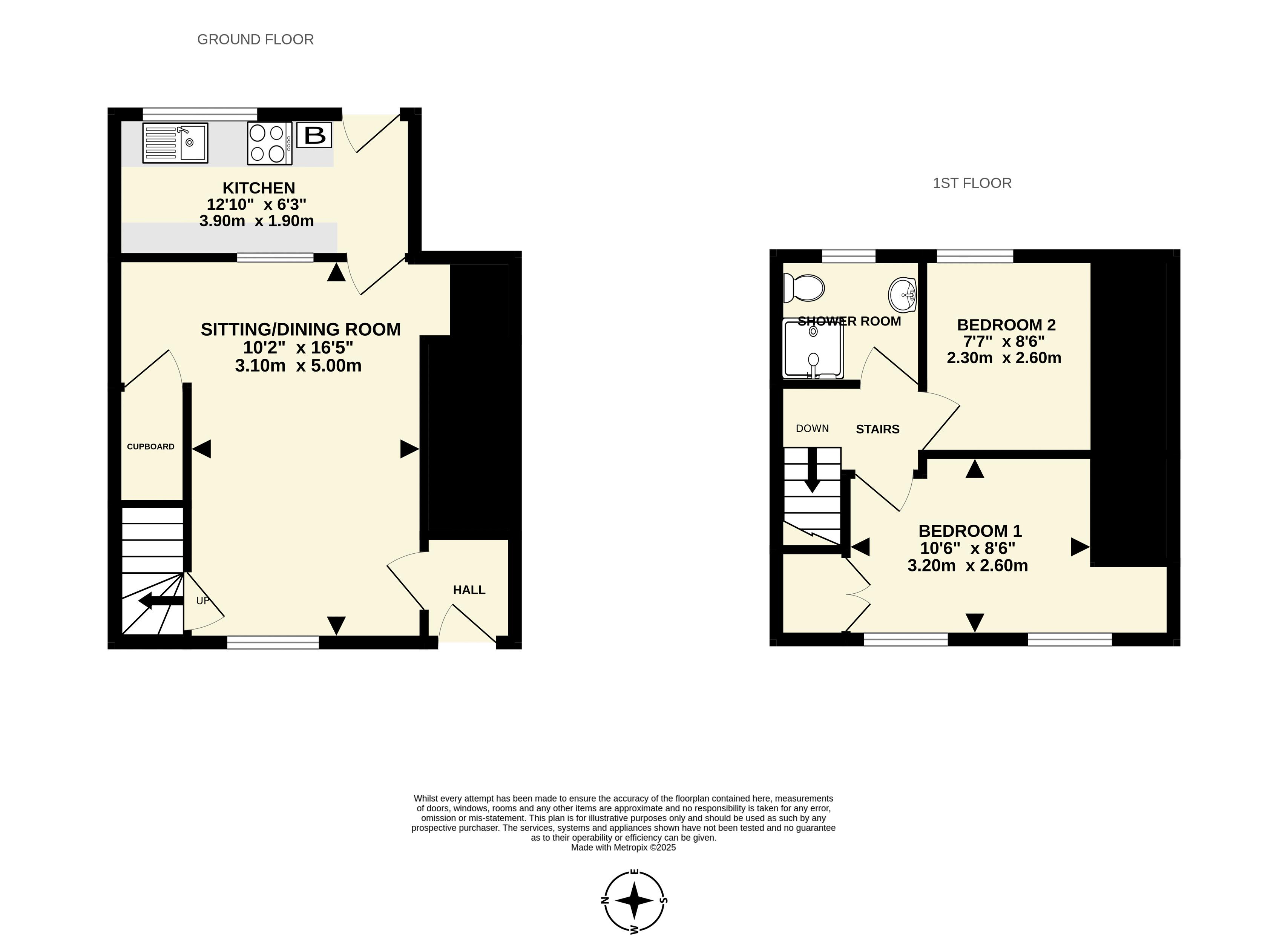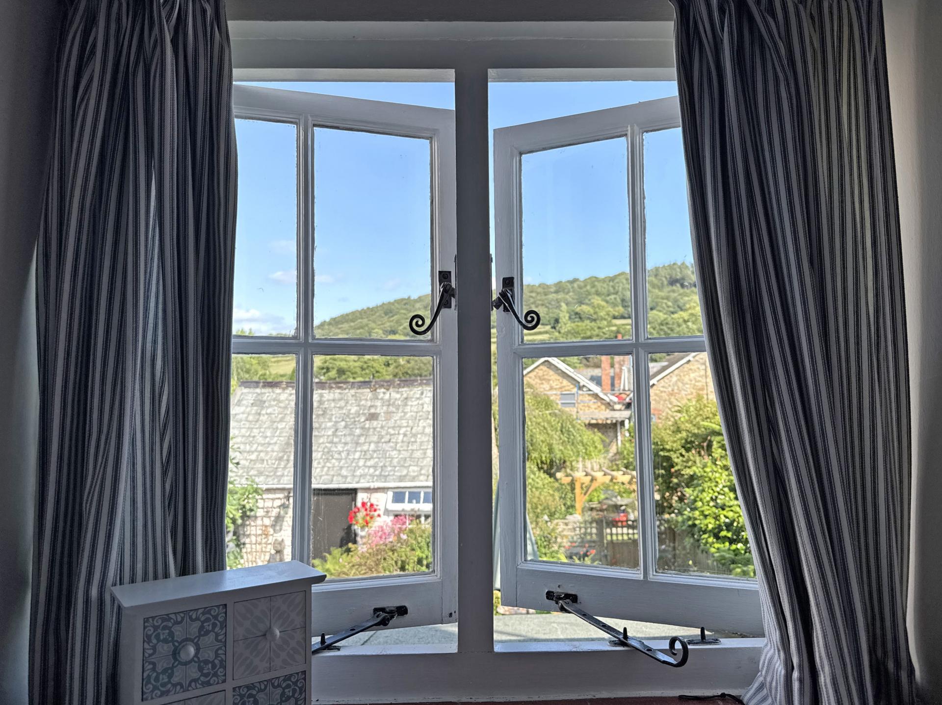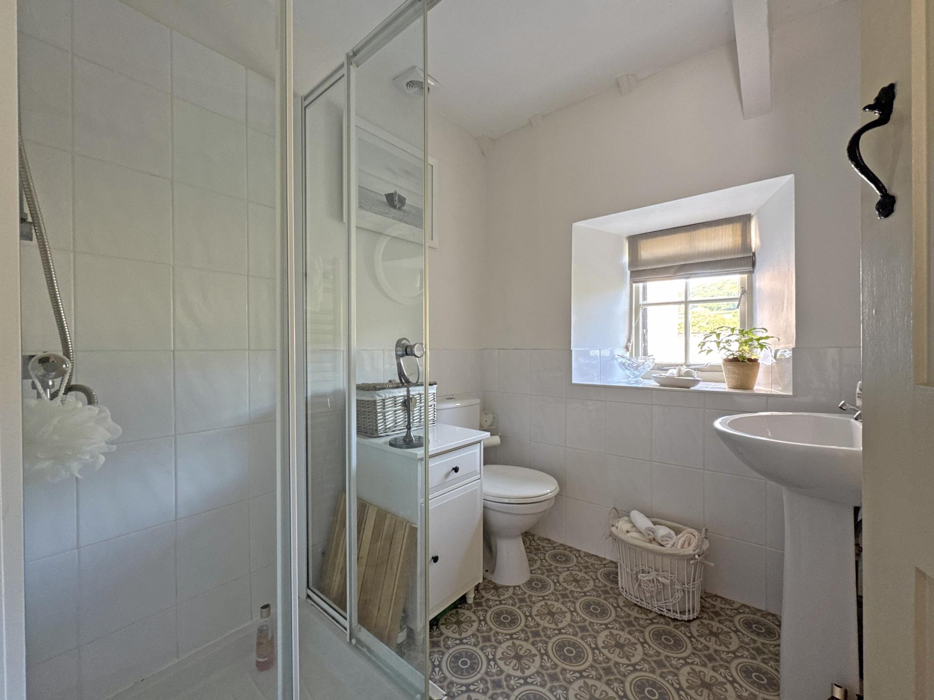 On the first floor, the main bedroom is to the front of the cottage, having two sash windows and a built-in wardrobe. The second bedroom has the east facing rear aspect with a pleasant view over the garden, neighbouring cottages and to hillside beyond. Lastly, the shower room is fitted with a mains shower, WC and wash basin.