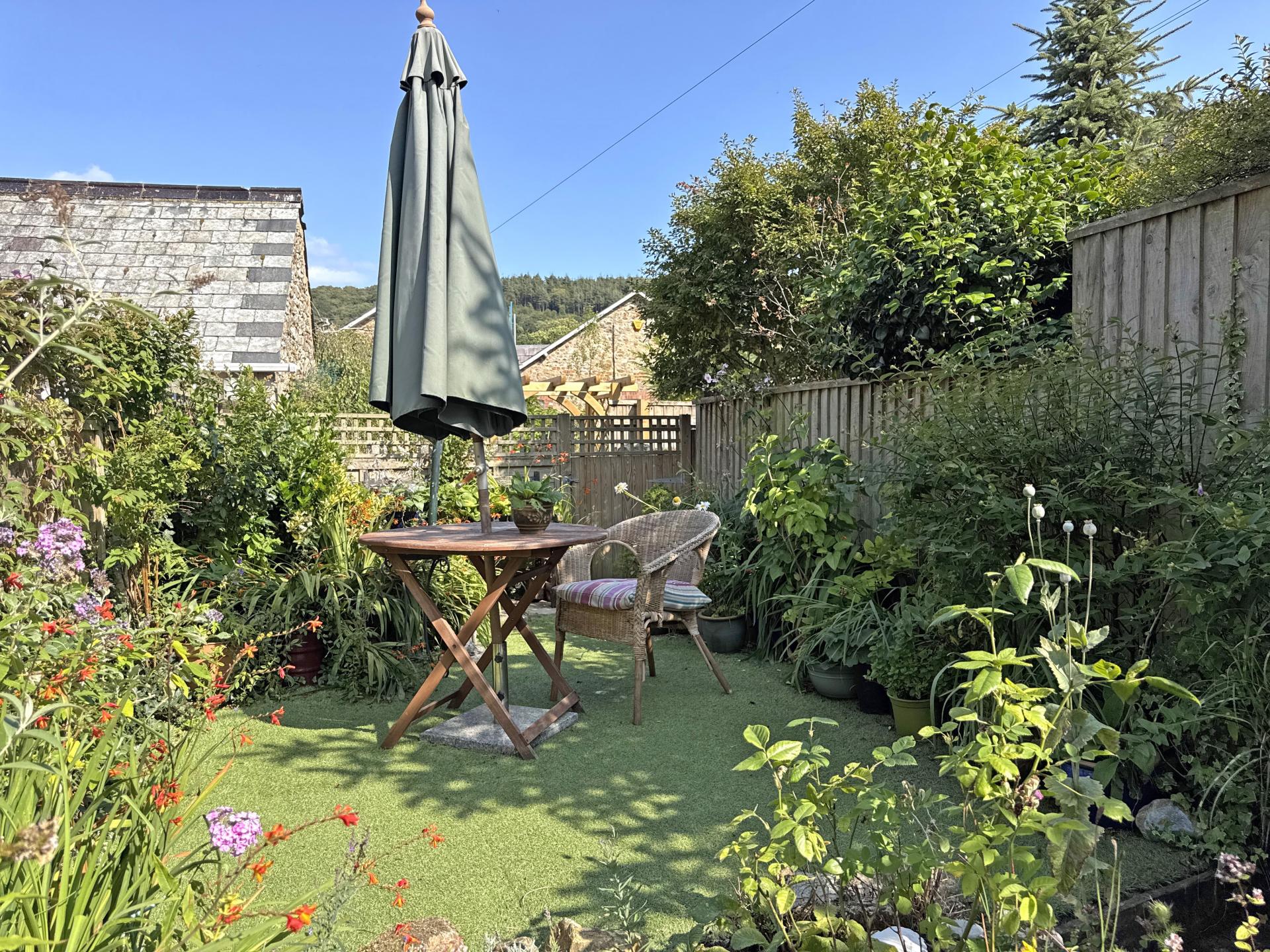 To the rear of the cottage is a delightful garden which enjoys an easterly aspect with a view through to Buckley Hill. A good size patio area is covered with artificial grass and bordered by colourful, well stocked flowerbeds. A gate at the foot of the garden gives access to a bin storage area and pedestrian rear access.