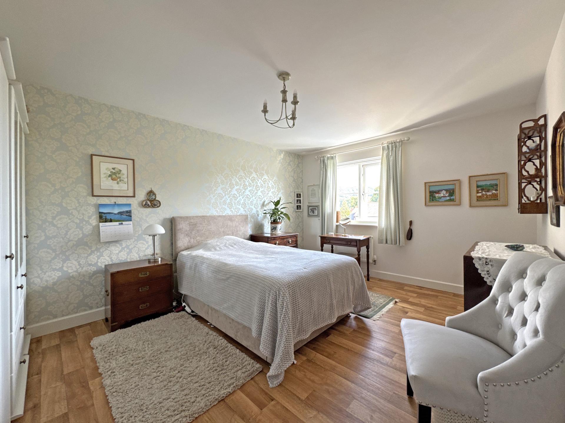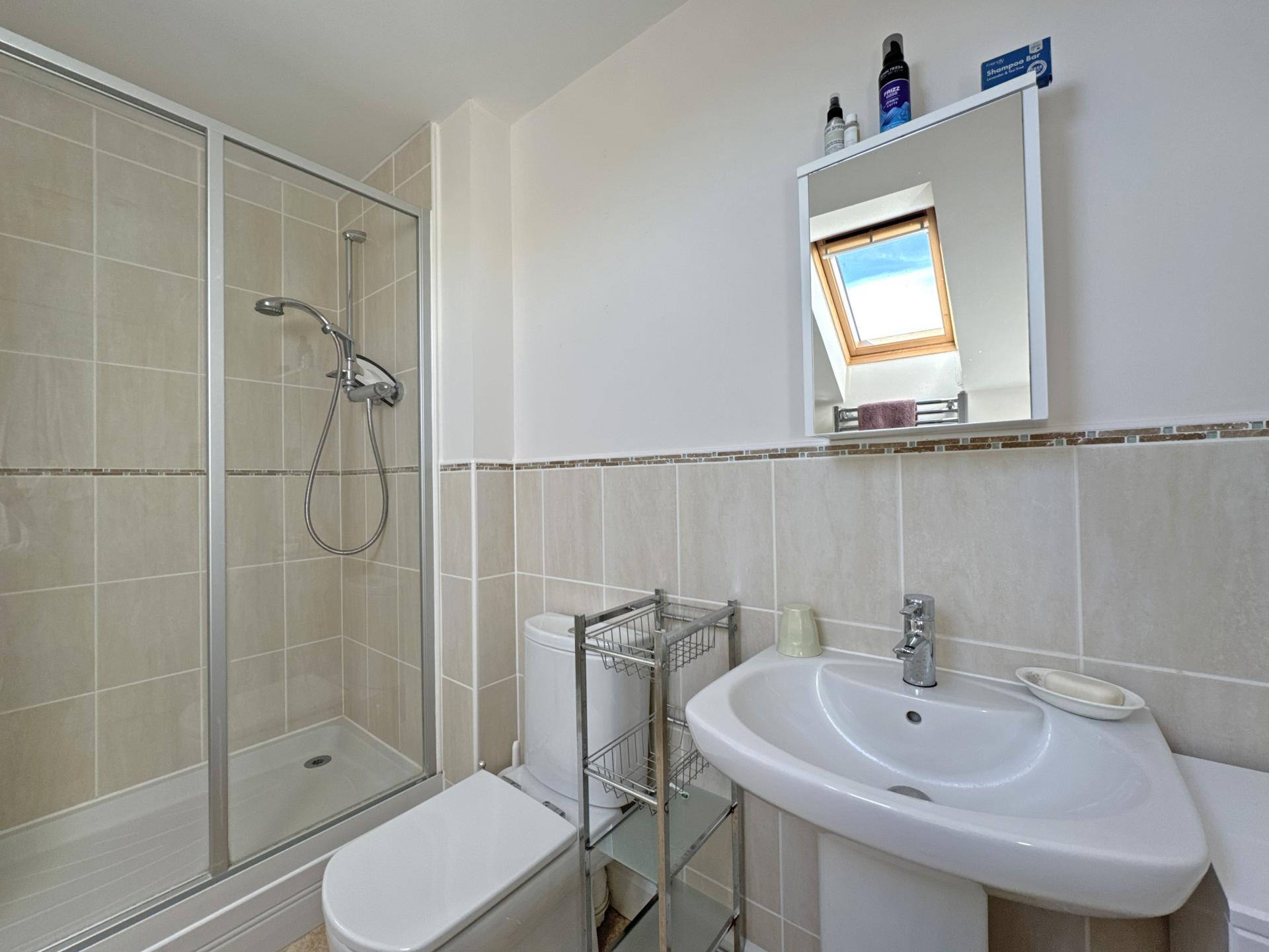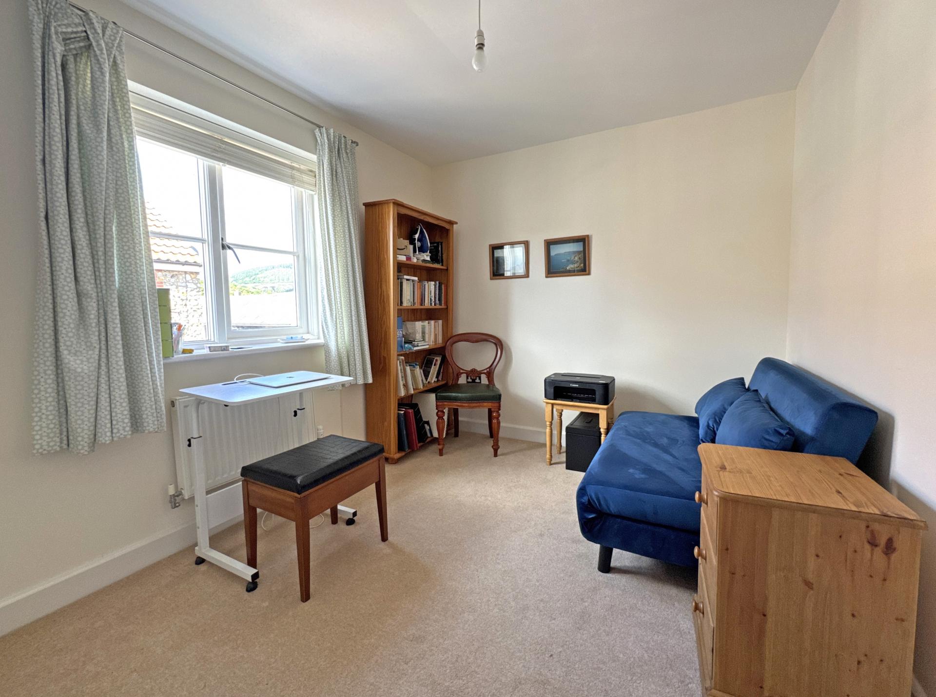 On the first floor, the second bedroom is particularly spacious and enjoys a fine view to the Parish Church and beyond to Salcombe Hill. There are two further double bedrooms and a modern, well-appointed shower room. On the second floor is a dual aspect main bedroom with built-in storage cupboards and wardrobe, a pleasant view to Buckley Hill in the direction of Sidbury and a spacious en suite shower room.