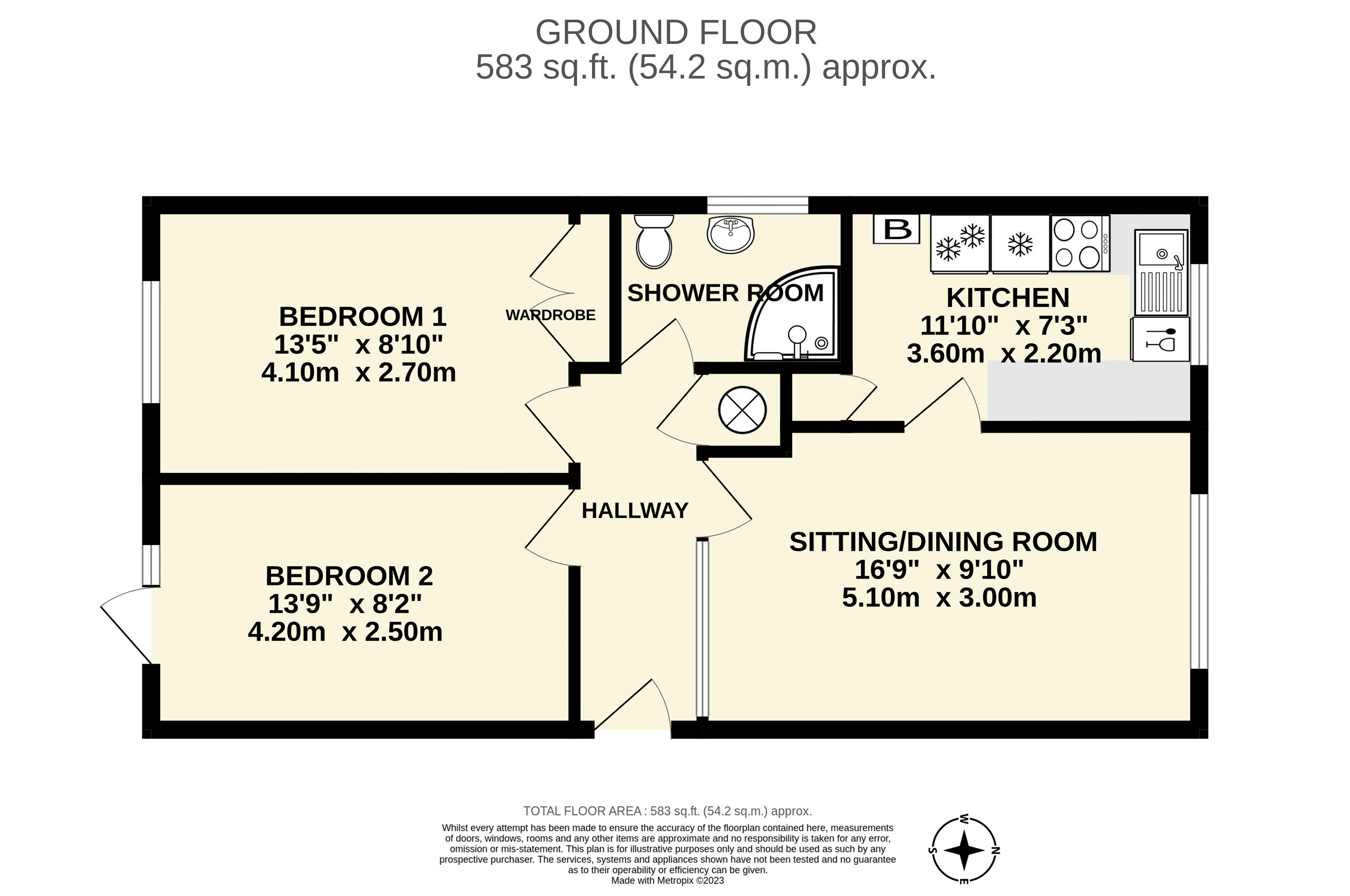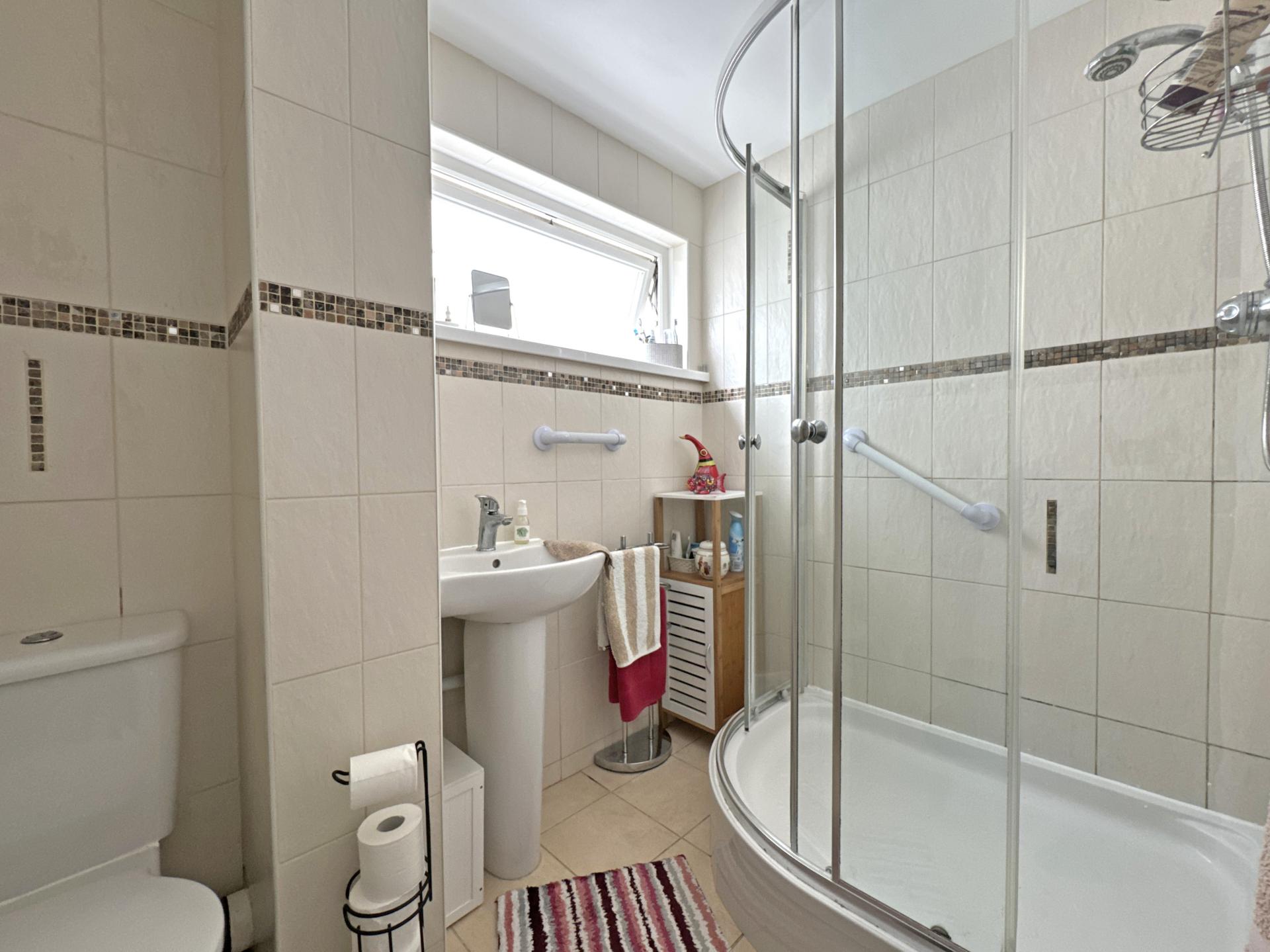 The main bedroom has a rear facing window, built-in wardrobe and good quality freestanding wardrobes will also be included in the sale. There is a second good size double bedroom, again the wardrobes will be included in the sale and there is a rear facing double glazed door opening onto the south facing communal garden. The shower room has a side facing window and is fitted with a modern suite to include a mains shower.
