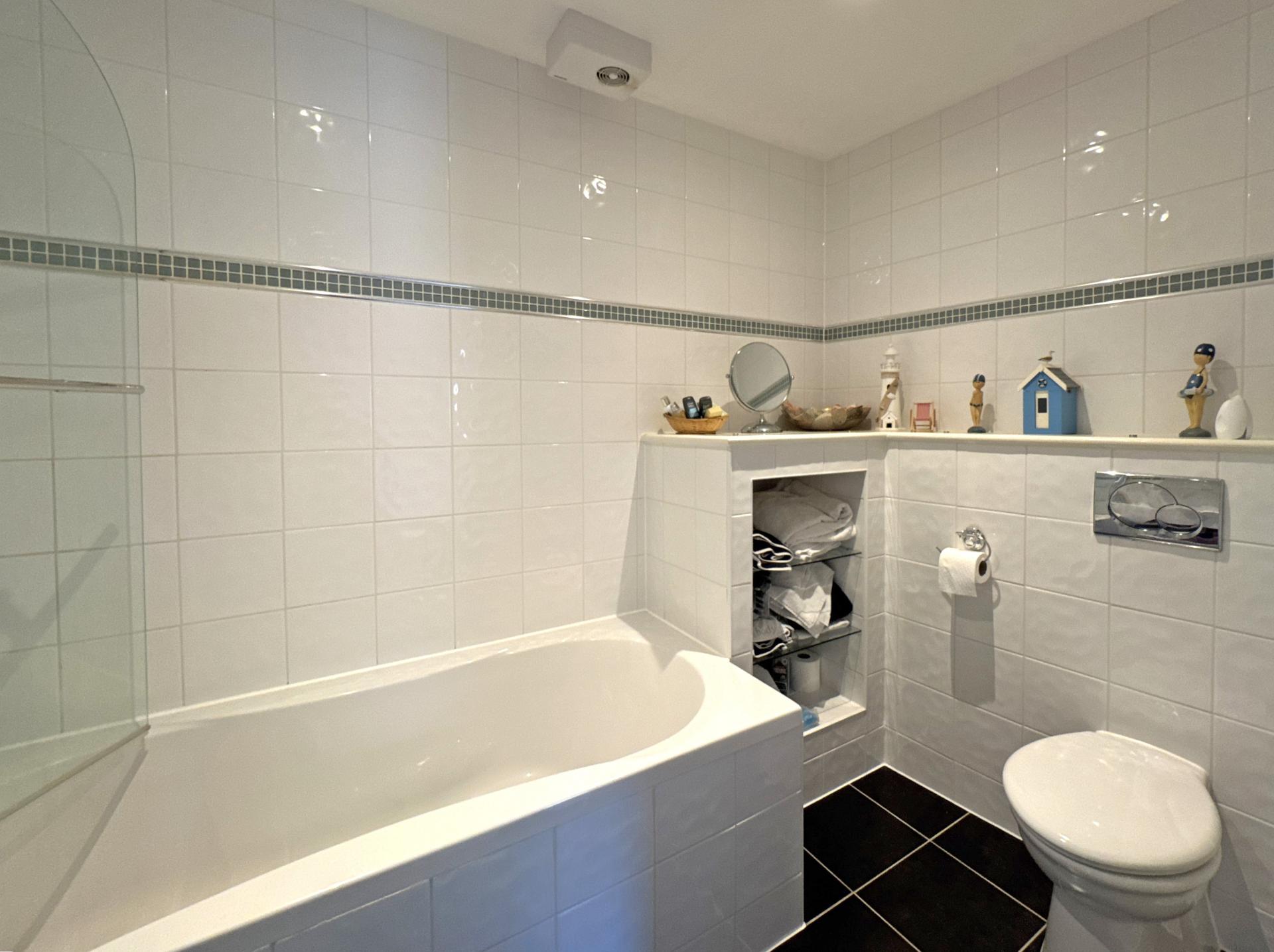 There are two bedrooms and a well-appointed bathroom with shower over the bath, built in storage and a heated, tile floor.