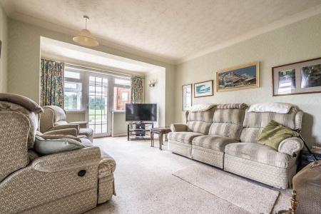 LOUNGE: Two double and one single radiator, attractive open fire place with side shelf, coved/artex ceiling, television point, wall light point. Door to dining room and door to inner hall.