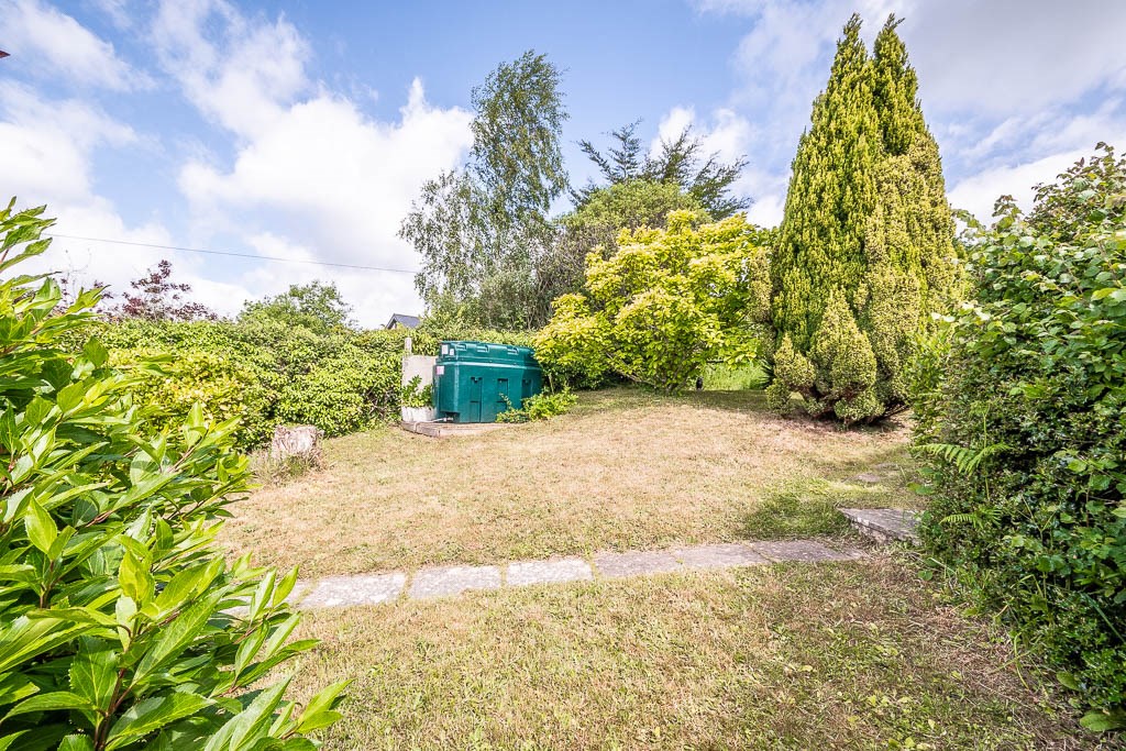 OUTSIDE: The property is set in grounds of approximately a quarter of an acre with a pedestrian gate access from the front elevation with steps leading up to patio, terrace and front door. The front garden is laid mainly to lawn. Pedestrian side access leading to rear garden which is further side access from Shepherds Lane whilst there is vehicle access from the top of the garden which leads to concrete "Marley" style detached garage with adjacent parking. Within the rear garden are mature shrubs and trees, fruit cage, areas of lawn and a large oil tank.