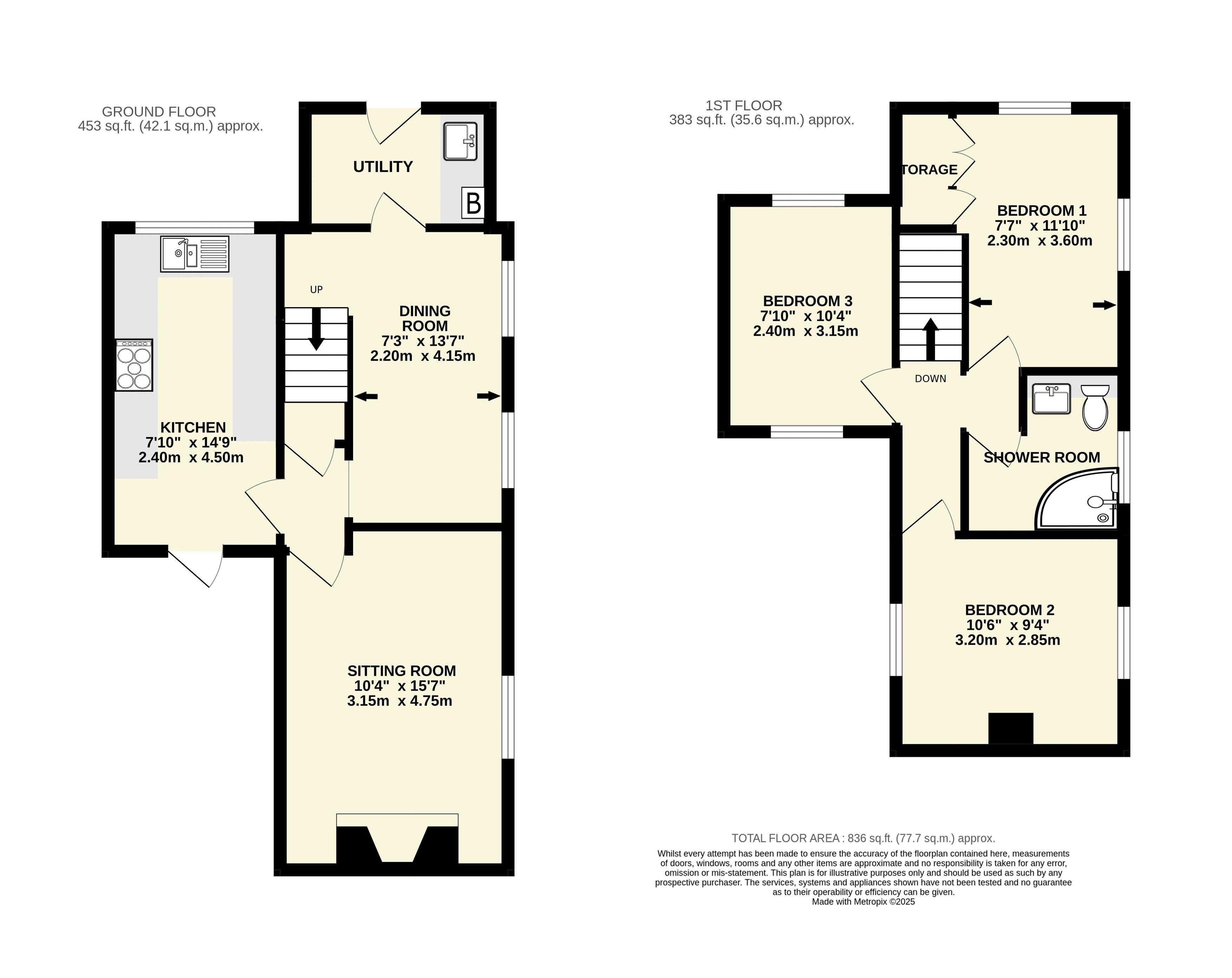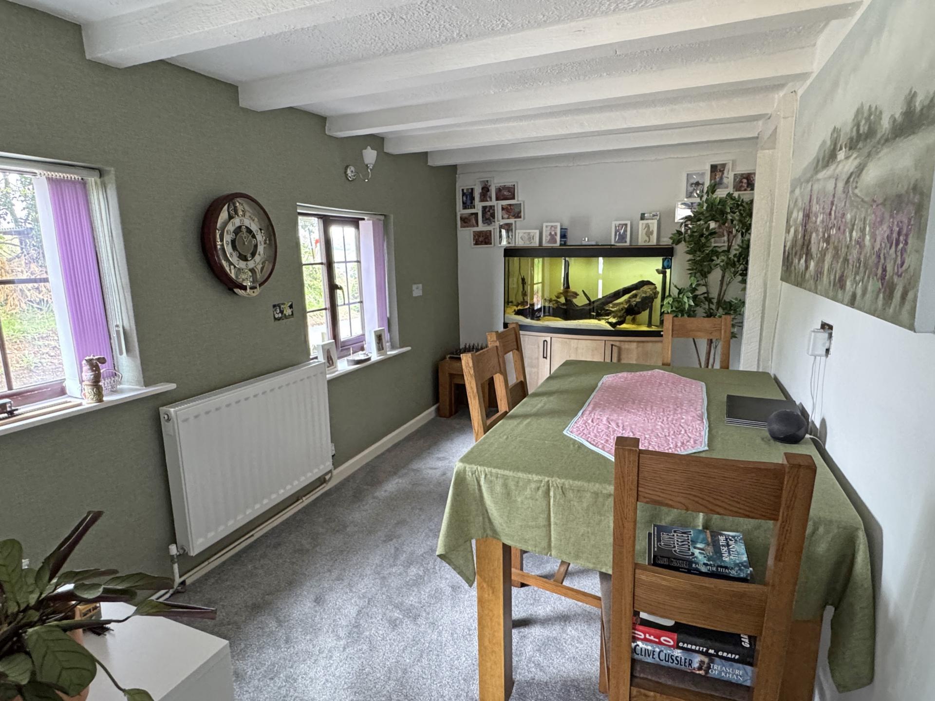 The sitting room enjoys a lovely dual aspect with feature fireplace and fitted wood burning stove. The dining room has two windows along with the stairs rising to the first floor and has an adjoining utility room which offers further storage, houses the gas fired boiler and gives access to the garden.